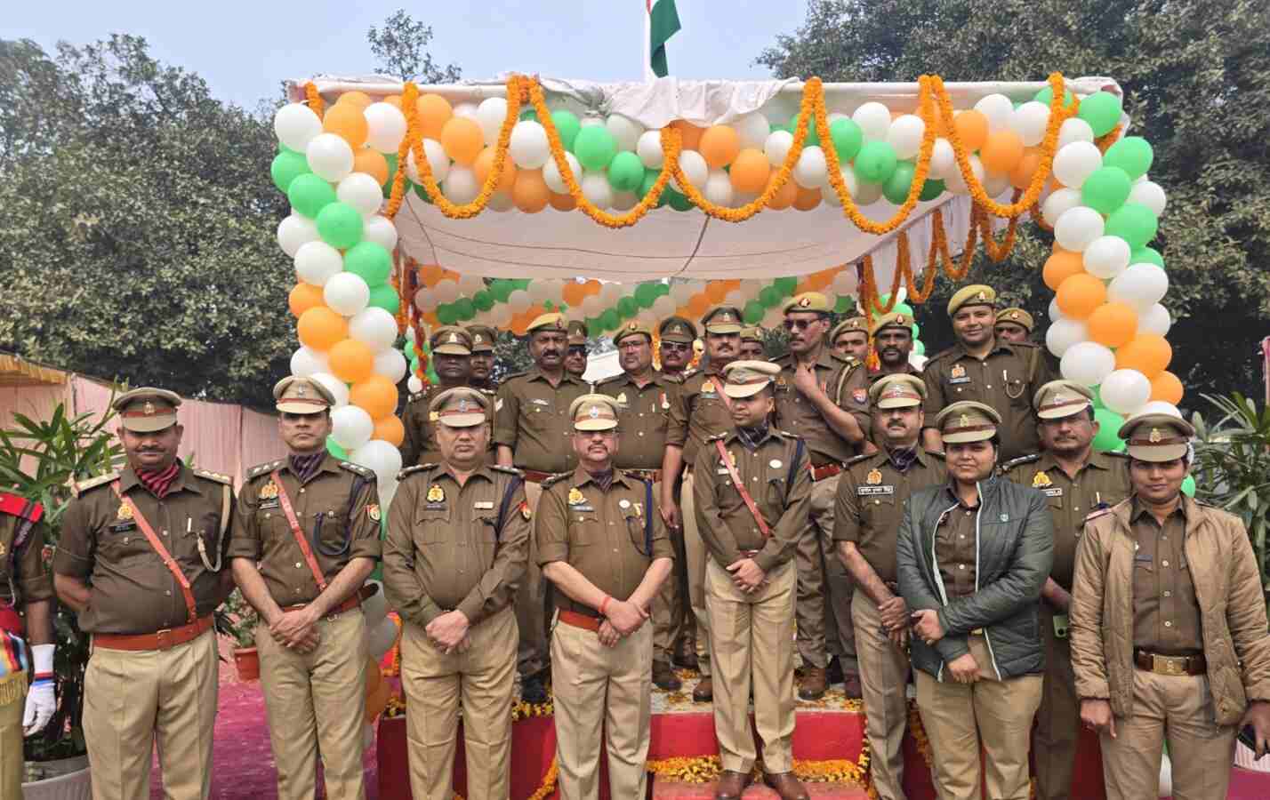देवरिया। 76 वें गणतन्त्र दिवस के अवसर पर माननीय मुख्य अतिथि श्रीमती विजय लक्ष्मी गौतम राज्य मंत्री उत्तर प्रदेश द्वारा पुलिस लाइन में ध्वजारोहण किया गया तथा परेड का मान प्रणाम लिया गया। परेड में सम्मिलित टोली प्रथम टोली सशस्त्र पुलिस, द्वितीय टोली नागरिक पुलिस, तृतीय टोली सशस्त्र पुलिस महिला पुलिस, चतुर्थ टोली नागरिक पुलिस महिला पुलिस, पंचम टोली पुलिस कार्यालय देवरिया, छष्ठम टोली प्रशिक्षु आरक्षी, सप्तम टोली प्रशिक्षु आरक्षी, अष्टम टोली 49वीं वाहिनी एनसीसी, नवम् टोली 52 वीं वाहिनी एनसीसी, मोटर साइकिल दस्ता, डॉग स्कवायड, यू0पी0 112 वाहन दस्ता, यू0पी0 112 महिला वाहन दस्ता, दंगा निरोधक वाहन, रेड़ियों दस्ता, साइबर क्राइम सेल, विधि विज्ञान, अग्निशमन दल परेड में शामिल रहे।
