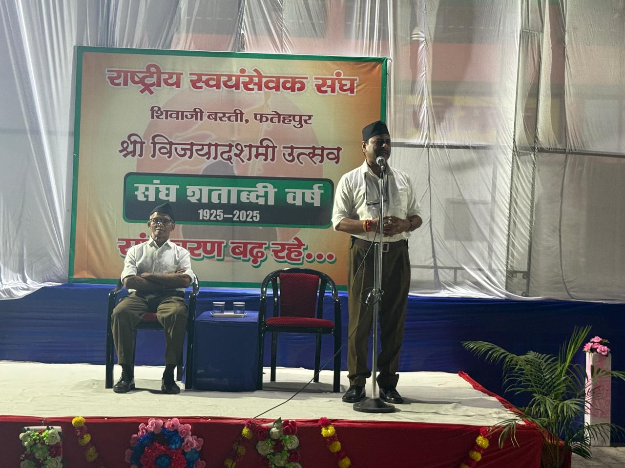 फतेहपुर। राष्ट्रीय स्वयंसेवक संघ के शताब्दी वर्ष के अवसर पर गुरुवार शाम भव्य पथ संचलन निकाला गया। स्वयंसेवक पूर्ण गणवेश में कदमताल करते हुए निकले, जिससे अनुशासन, ऊर्जा और राष्ट्रभक्ति का अनूठा दृश्य देखने को मिला। पथ संचलन विद्या मंदिर VIP रोड से शुरू होकर मंडप गेस्ट हाउस, बुलेट चौराहा, रानी कलोनी CO ऑफिस, डाक बंगला चौराहा होते हुए पुनः विद्या मंदिर VIP रोड पर समाप्त हुआ।