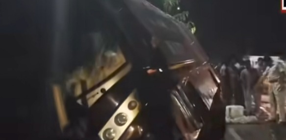 पुलिस और स्थानीय लोगों ने कड़ी मशक्कत के बाद देर रात बस को सड़क से हटाकर यातायात सामान्य कराया।
