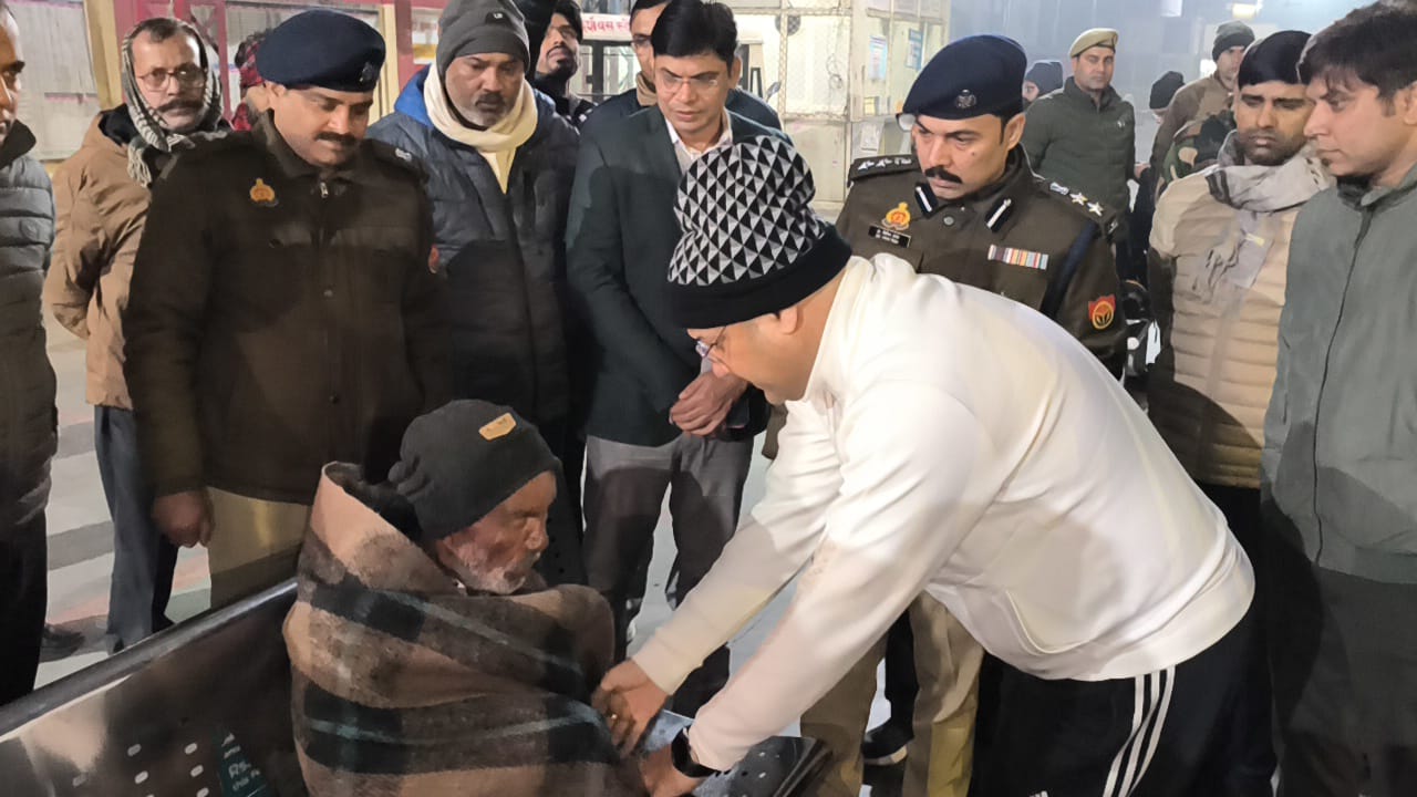मेरठ : रैन बसेरा पहुंचे डीएम व एसएसपी, गर्म कंबलों का किया वितरण