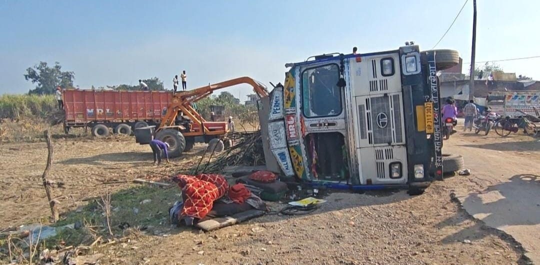 जानकारी के अनुसार, सुजौली थाना क्षेत्र के चफरिया गन्ना सेंटर से खंभार खेड़ा चीनी मिल, लखीमपुर खीरी के लिए ओवरलोड ट्रक गन्ना लेकर जा रही थी। कुछ दूरी तय करने के बाद ट्रक बीच सड़क पर ही पलट गई। वाहन असंतुलित होते ही चालक और खलासी ट्रक से कूद गए, जिससे उनकी जान बच गई।