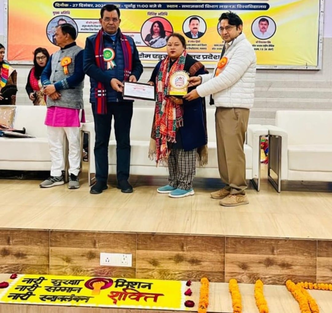 लखनऊ विश्वविद्यालय में शनिवार को एडुस्टफ”अन्विता “राज्य स्तरीय शिक्षक सम्मान “शिक्षा और नवाचार की युति”सम्मान समारोह का आयोजन किया गया जिसमें संयुक्त शिक्षा निदेशक लखनऊ प्रदीप कुमार सिंह , लखनऊ विश्वविद्यालय के समाज कार्य के विभागाध्यक्ष प्रोफेसर राकेश द्विवेदी ,प्रोफेसर संजय मेधावी द्वारा “अन्विता”राज्य स्तरीय शिक्षक सम्मान “शिक्षा और नवाचार की युति”से उच्च प्राथमिक विद्यालय पर से आलम के सहायक अध्यापक नवल कुमार पाठक तथा प्राथमिक विद्यालय खुटेहना की शिक्षिका अंजू शर्मा को सम्मानित किया l शिक्षक और शिक्षिका के सम्मान प्राप्त होने पर सुनील पांडे , शिप्रा शुक्ला, गोपाल जी शुक्ला रजनीश शुक्ला, राजेश मिश्रा, प्रदीप पांडे दीनानाथ दीक्षित अजय शुक्ला रामकुमार पांडे प्रीति मिश्रा अजय श्रीवास्तव तथा के आलोक शुक्ला आदि ने बधाई दी है l