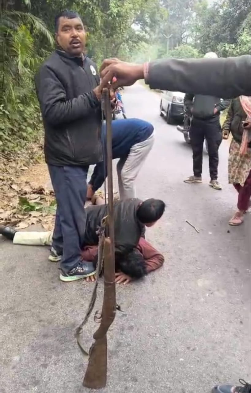 इस दौरान उसने भगाने की बहुत कोशिश की परंतु वचरो ने उसे वहीं पकड़ कर रखा तथा वन रेंज कार्यालय फोन कर वहान मंगा कर उसे रेंज ले गए वन कर्मियों ने उसके पास से एक बंदूक बरामद किया गया है। वन्य जीव अधिनियम की धारा के तहत उसे न्यायलय में पेश किया जाएगा।