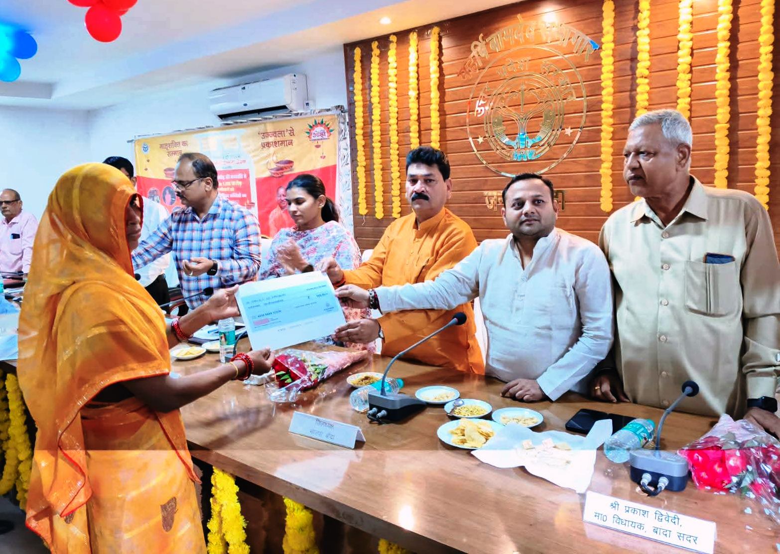 कलक्ट्रेट स्थित महर्षि वामदेव सभागार में बुधवार को आयोजित कार्यक्रम में सांकेतिक रूप से जिले के उज्ज्वला योजना के 20 लाभार्थी परिवारों को भाजपा जिलाध्यक्ष कल्लू सिंह राजपूत, सदर विधायक प्रतिनिधि रजत सेठ, नगर पालिका पूर्व चेयरमैन राजकुमार राज और जिलाधिकारी जे. रीभा ने संयुक्त रूप से चेक के माध्यम से धनराशि प्रदान की। लाभान्वित होने वालों में शिवप्यारी, मंजू, रामलली, कुसमा, उर्मिला, रूबीना, शौर्या बेगम, सीमा गुप्ता सहित अन्य लाभार्थी शामिल रहे। यह धनराशि उन 20 लाभार्थियों को दी गई है जिनका ई-केवाईसी पूरा हो चुका है। शेष लाभार्थियों को ई-केवाईसी पूरा होने के बाद लाभान्वित किया जाएगा।