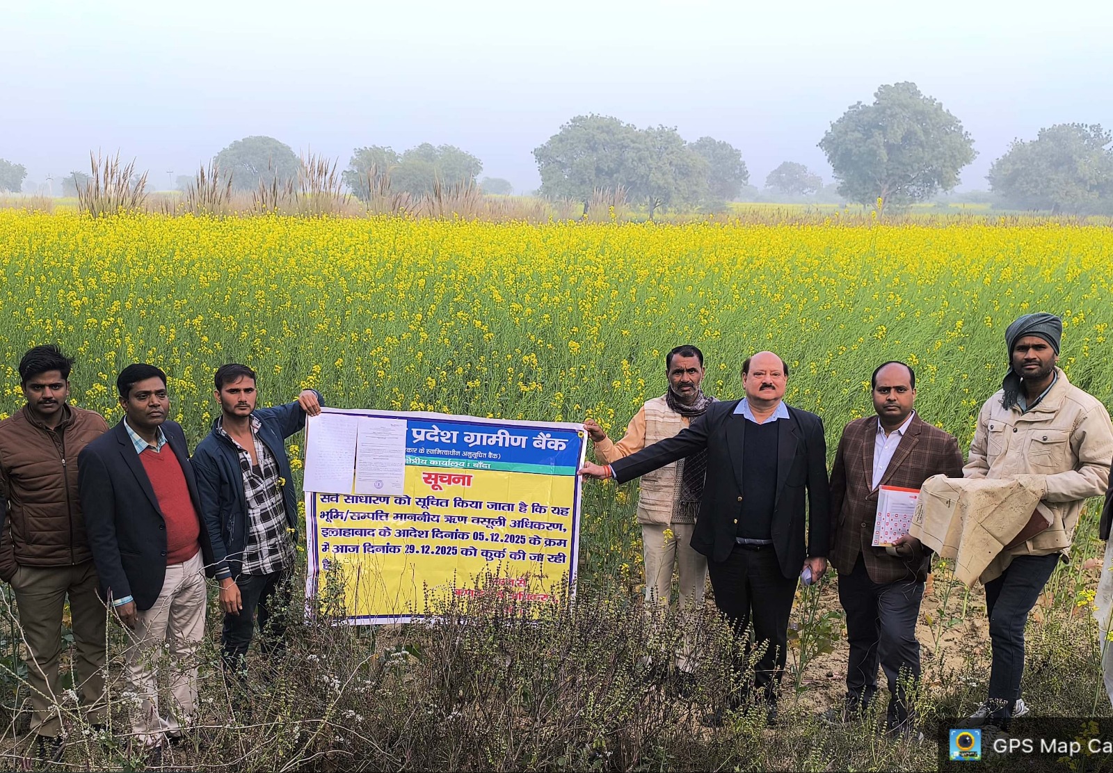 Banda : ऋण वसूली अधिकरण, इलाहाबाद (डीआरटी) के आदेश पर उत्तर प्रदेश ग्रामीण बैंक पतवन शाखा ने किसान की बंधक 7.487 हेक्टेयर भूमि को कुर्क कर लिया। इस दौरान नायब तहसीलदार और लेखपाल अपनी राजस्व टीम के साथ मौजूद रहे।