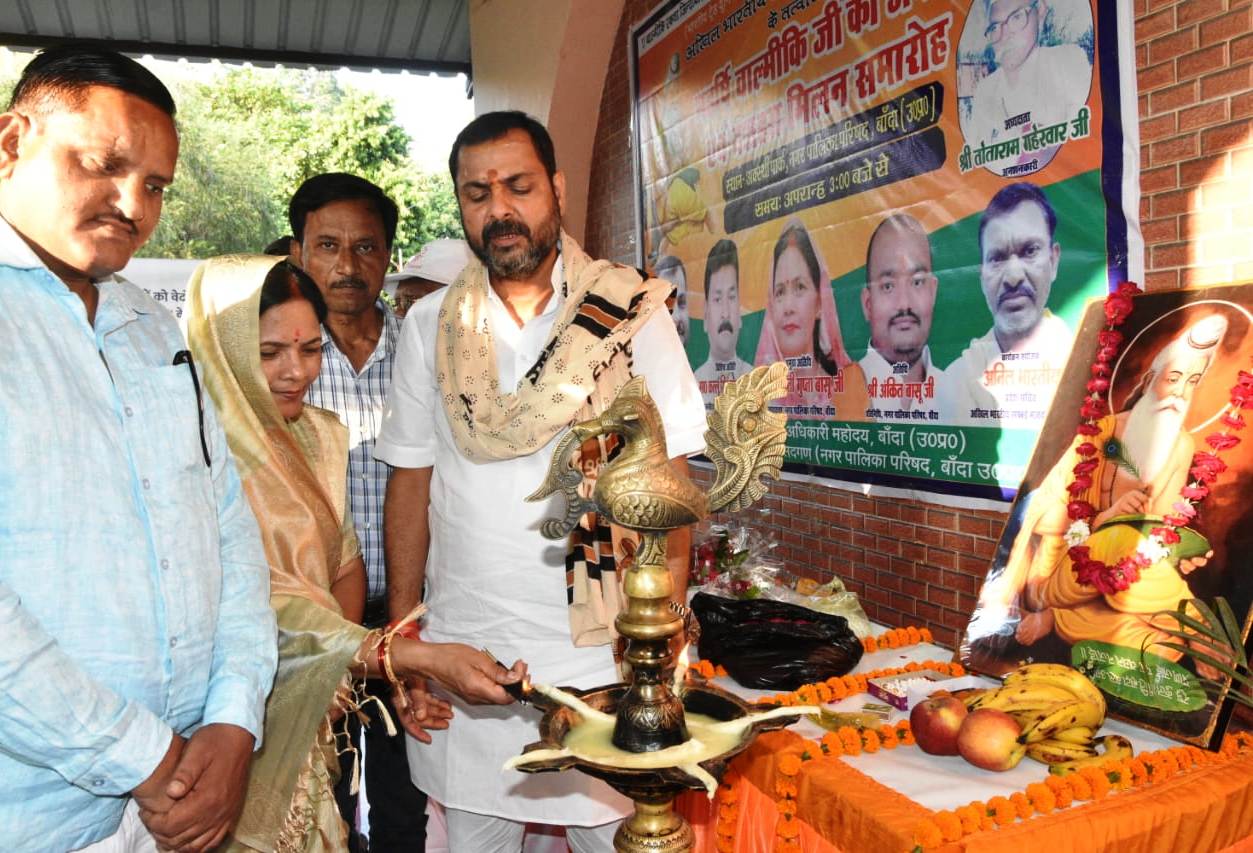 Banda : भारतीय संस्कृति के आधार महाकाव्य रामायण के रचयिता आदि कवि महर्षि वाल्मीकि की जयंती के अवसर पर जगह-जगह कार्यक्रम आयोजित किया गया और महर्षि को नमन किया गया। नगर पालिका परिषद में वाल्मीक जयंती और दशहरा मिलन कार्यक्रम आयोजित किया गया। यहां मुख्य अतिथि के रूप में सदर विधायक प्रकाश द्विवेदी ने महर्षि वाल्मीकि को भारतीय संस्कृति का प्रणेता बताया। नगर पालिका अध्यक्ष मालती बासू ने महर्षि वाल्मीकि को नमन किया। जिला कांग्रेस कमेटी ने महुआ ब्लाक क्षेत्र के गिरवां और शहर कमेटी ने कांग्रेस कार्यालय में पूरी आस्था के साथ मनाई। उनके चित्र पर पुष्पांजलि व माल्यार्पण करते हुए कांग्रेसियों ने महर्षि को नमन किया।