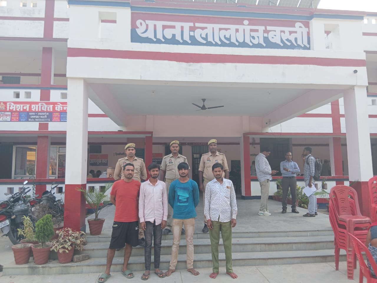 Bankati, Basti : शांति एवं कानून व्यवस्था बनाए रखने के उद्देश्य से थाना लालगंज पुलिस ने शनिवार को कार्रवाई करते हुए चार व्यक्तियों को गिरफ्तार किया है। गिरफ्तार किए गए आरोपियों में श्यामसुन्दर पुत्र परमात्मा, रामकिशोर उर्फ लड्डू पुत्र परमात्मा, मोनू उर्फ सुशील, तथा राहुल पुत्र मनीराम शामिल हैं। ये सभी निवासी ग्राम धौरुखोर, थाना लालगंज, जनपद बस्ती के हैं।