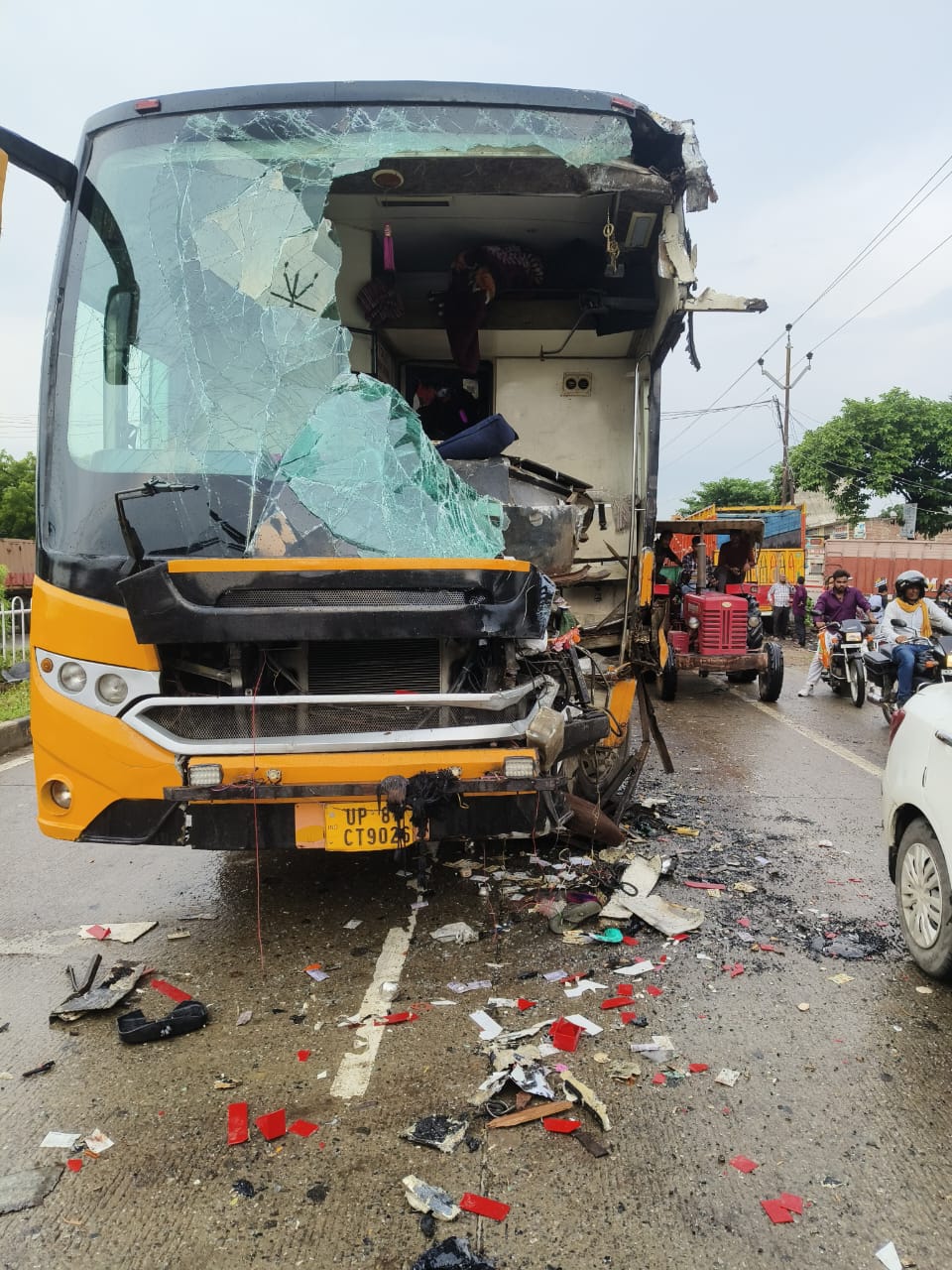 बस्ती: रविवार की शाम पुरानी बस्ती थाना क्षेत्र स्थित पुलिस चौकी हड़िया के सामने, एनएच 27 पर बाबा ढाबा के पास, गोरखपुर-लखनऊ लेन में खड़े एक ट्रक के सामने लक्जरी बस ने ठोकर मार दी। इस हादसे में दोनों वाहनों के परखच्चे उड़ गए।
