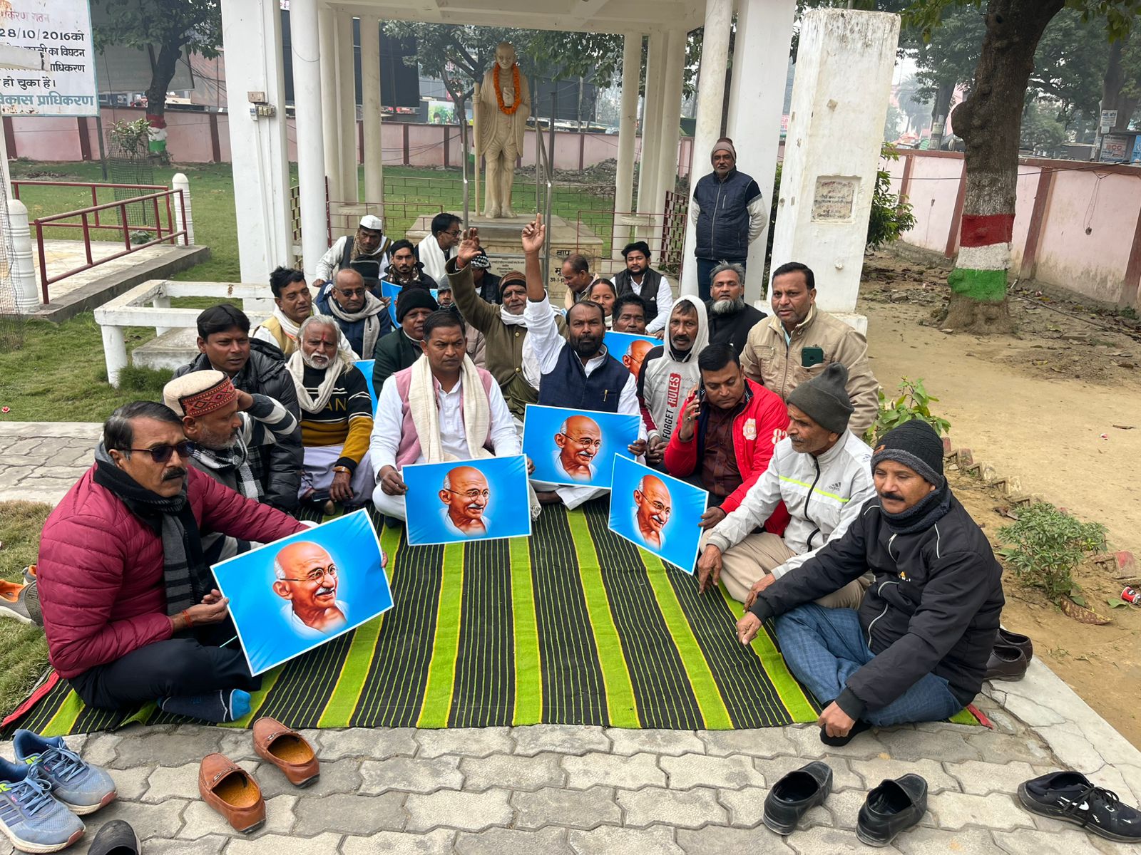 Basti : कांग्रेस नेताओं ने सोमवार को मनरेगा का नाम बदलकर विकसित भारत गारंटी फॉर रोजगार एंड आजीविका मिशन (ग्रामीण)’ (वीबीजीआरएमजी) किए जाने के विरोध में कांग्रेस अध्यक्ष विश्वनाथ चौधरी के नेतृत्व में महात्मागांधी प्रतिमा के समक्ष प्रदर्शन किया। मांग किया कि केन्द्र की मोदी सरकार नाम बदलने की राजनीति बंद करे और मनरेगा को पूर्व की भांति लागू किया जाय।