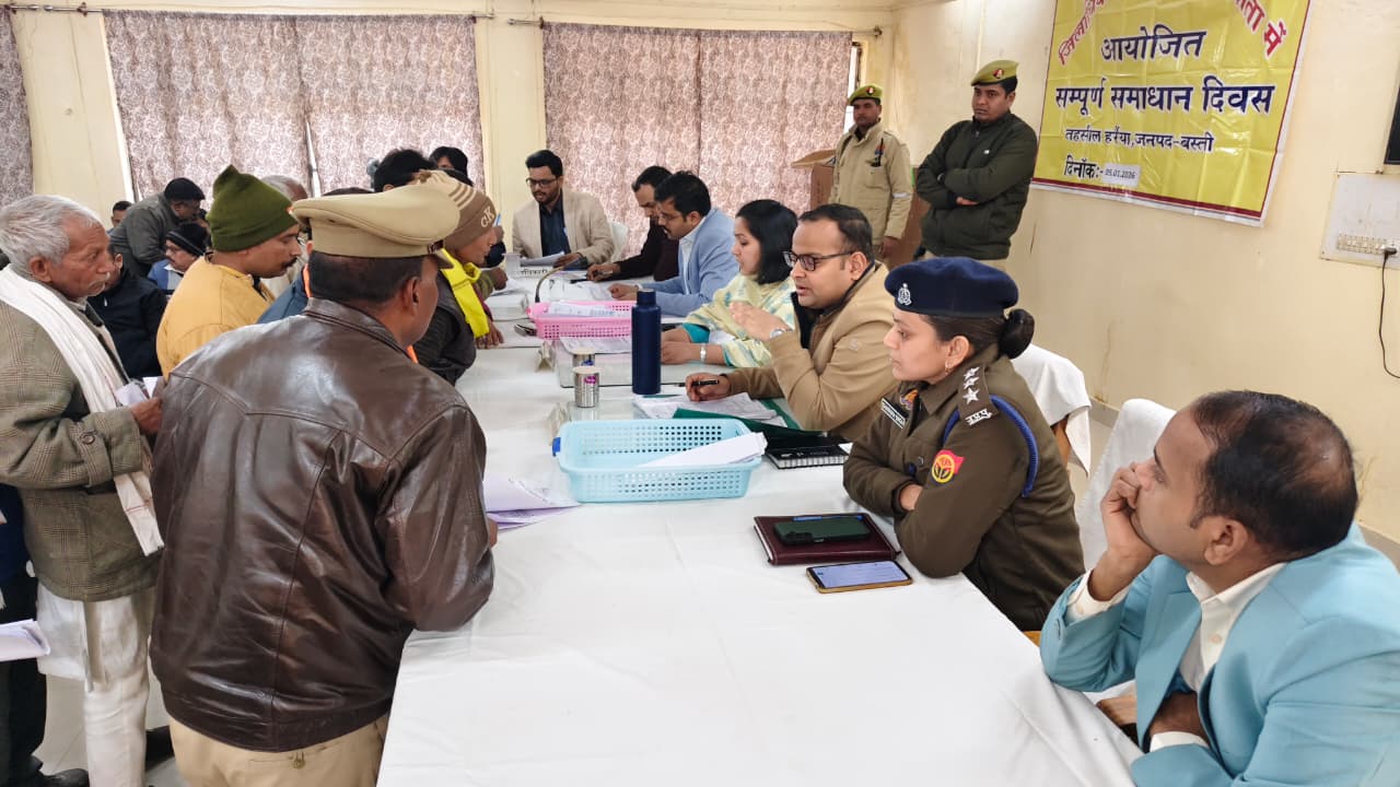 Basti : शासन की प्राथमिकताओं के अनुरूप सोमवार को तहसील सभागार हर्रैया में सम्पूर्ण समाधान दिवस का आयोजन जिलाधिकारी श्रीमती कृत्तिका ज्योत्सना की अध्यक्षता में सम्पन्न हुआ। इस अवसर पर जनपद के विभिन्न क्षेत्रों से आए नागरिकों ने अपनी समस्याएँ जिलाधिकारी के समक्ष रखीं।