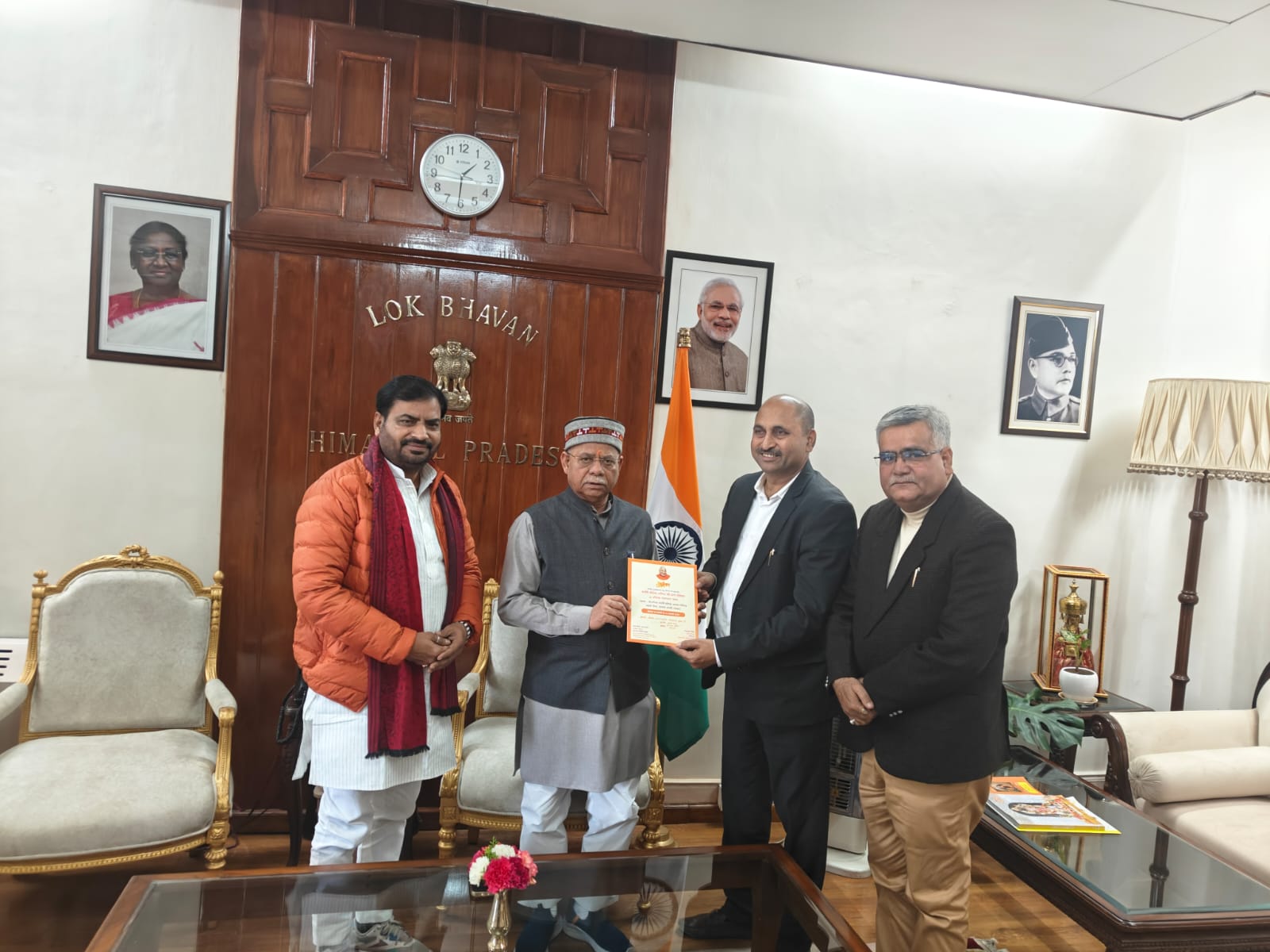 Basti : फरवरी में आयोजित महर्षि वशिष्ठ मन्दिर के प्राण प्रतिष्ठा समारोह में हिमाचल प्रदेश के राज्यपाल शिव प्रताप शुक्ल सम्मिलित होंगे। वशिष्ठ रामायण कथा के मुख्य यजमान और दिग्गज उद्योगपति चंद्र भूषण मिश्र ने उन्हें वशिष्ठ आश्रम बढ़नी मिश्र आने का न्यौता दिया है। उक्त जानकारी देते हुए कार्यक्रम संयोजक राना दिनेश प्रताप सिंह ने बताया कि आयोजन समिति के सदस्य राजेश त्रिपाठी सहित तीन सदस्यीय प्रतिनिधि मण्डल ने हिमाचल प्रदेश स्थित शिमला के लोक भवन में महामहिम राज्यपाल महोदय से रविवार को मुलाकात किया।