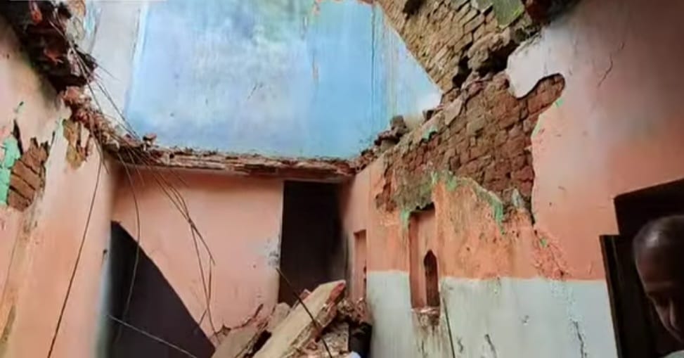 Basti : बारिश के चलते भरभराकर गिरा पुराना मकान, दुर्घटना टली