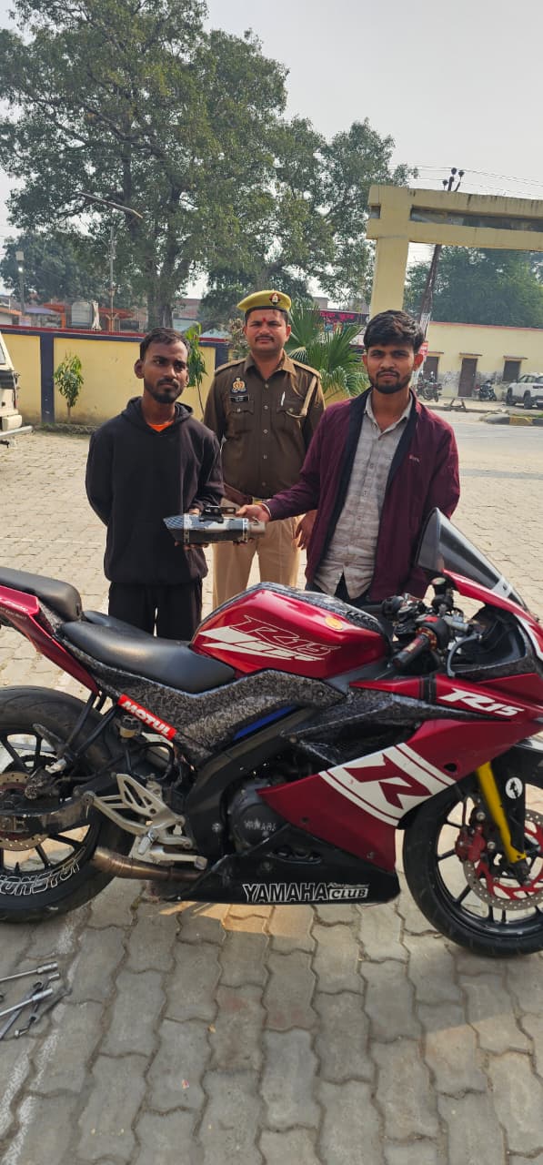 पुलिस ने बताया कि वे मुंबई से बाइक लेकर आये थे और वहीँ पर ही मोडिफाई साइलेंसर लगवाकर आया था। पुलिस ने दोनों युवक अभिषेक प्रजापति पुत्र दीप नरायन और विकास गुप्ता पुत्र दिलीप कुमार के खिलाफ विधिक कार्यवाई कर जेल भेज दिया है जबकि बाइक को कब्जे में लेकर थाने हिरासत में रखा है। कार्यवाई करने में करने में उप निरीक्षक शिवकुमार यादव, हेड कांस्टेबल धीरेन्द्र दुबे, का.अंकित राय, व का. राजू यादव का योगदान रहा।
