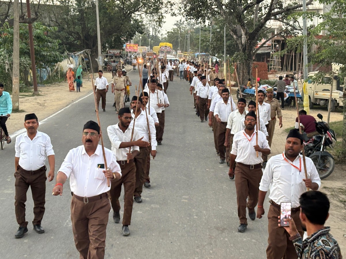 Sonha, Basti : राष्ट्रीय स्वयंसेवक संघ के शताब्दी वर्ष के उपलक्ष्य में आरएसएस के रामनगर इकाई द्वारा भानपुर में भव्य शस्त्र पूजन एवं पथ संचलन कार्यक्रम का आयोजन किया गया। कार्यक्रम में प्रमुख पदाधिकारियों, स्वयंसेवकों और गणमान्य नागरिकों ने भाग लिया। यह आयोजन संगठन की अनुशासन, राष्ट्रीय भावना और समाज सेवा की प्रतिबद्धता को उजागर करने के लिए किया गया। शस्त्र पूजन के बाद स्वयंसेवकों ने पूर्ण गणवेश में उकड़ा हनुमान मंदिर से भानपुर कस्बे से होते हुए तहसील प्रांगण पहुंचकर संपन्न हुआ। मार्ग के किनारे स्थानीय लोगों ने पुष्प वर्षा और शंखनाद के साथ स्वयंसेवकों का स्वागत किया। नारों और भारत माता की जय आदि उद्धघोष से कस्बा गूंज उठा।