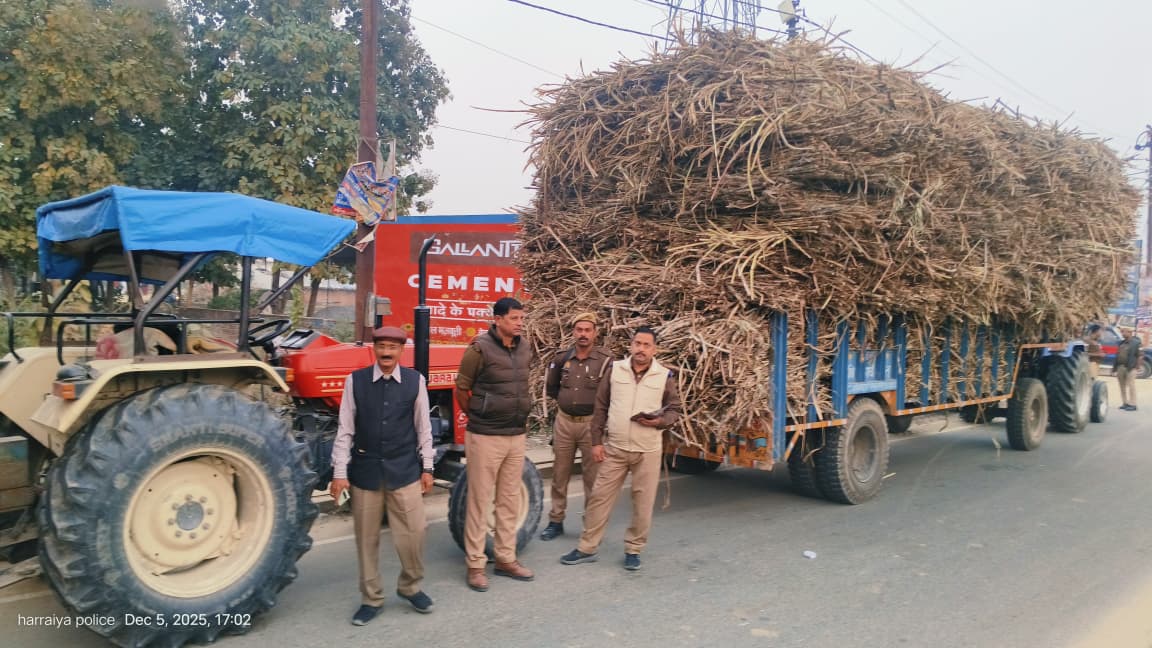 Harraiya, Basti : उच्चाधिकारियों के निर्देश के क्रम में थाना हर्रैया में क्षेत्राधिकारी स्वर्णिमा सिंह के नेतृत्व में प्रभारी निरीक्षक तहसीलदार सिंह और उनकी पुलिस टीम द्वारा उत्तर प्रदेश परिवहन विभाग के अधिकारियों/कर्मचारियों के संयुक्त तत्वावधान में थाना क्षेत्र हर्रैया में ओवरलोडिंग वाहनों, विशेष रूप से गन्ना लदे ट्रक और ट्रैक्टर-ट्रालियों के खिलाफ मोटर वाहन अधिनियम के अंतर्गत चालानी कार्यवाही की गई।