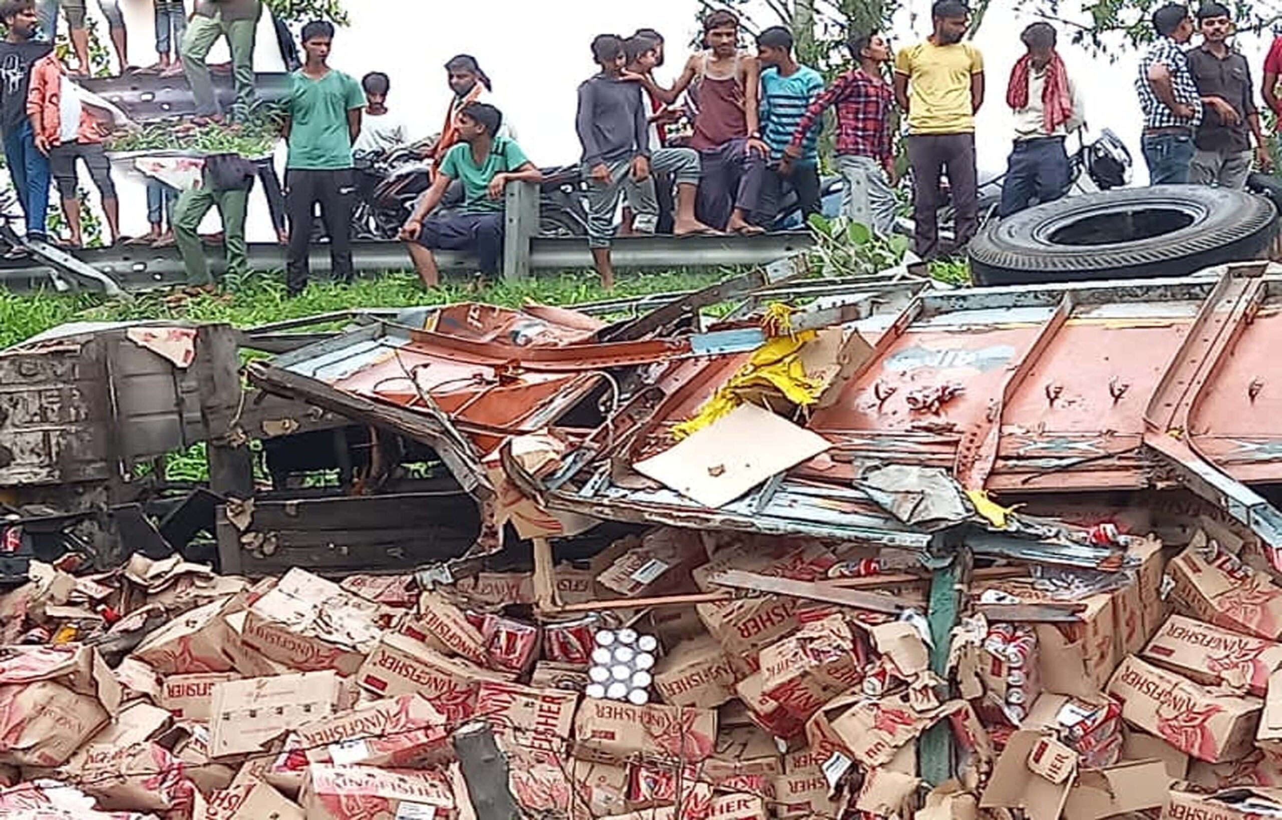 संभाजीनगर । महाराष्ट्र के छत्रपती संभाजीनगर के वालूज इलाके में रांजणगाव रोड पर बीयर से भरा ट्रक रास्ते में एक व्यक्ति को बचाने की कोशिश में ड्राइवर ने स्टीयरिंग मोड़ा और अनियंत्रित होकर पलट गया। इससे सड़क पर बीयर की बोतलें बिखर गईं। ट्रक के केबिन में चालक फंस गया। इसके बावजूद कुछ लोग चालक को बाहर निकालने की बजाय बीयर के बॉक्स उठाने दौड़ पड़े। सड़क पर कुछ ही मिनटों में लूट मच गई। आसपास से गुजर रहे लोग भी बोतलों को उठाने में लग गए और ट्रक के पास अफरा-तफरी का माहौल बन गया। इस घटना की सूचना कुछ लोगों ने तुरंत पुलिस को दी। जानकारी लगते ही पुलिस मौके पर पहुंची।