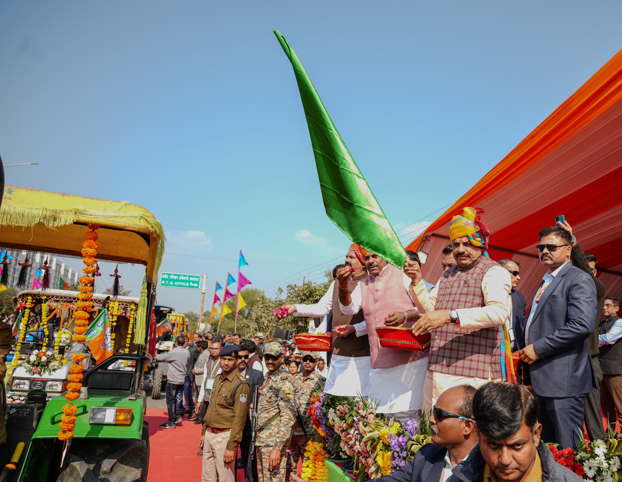 भोपाल : मुख्यमंत्री डॉ. मोहन यादव ने ‘कृषक कल्याण वर्ष 2026’ के शुभारंभ अवसर पर भोपाल में आयोजित राज्य स्तरीय कार्यक्रम में कृषि रथ एवं ट्रैक्टर रैली को हरी झंडी दिखाकर रवाना किया।