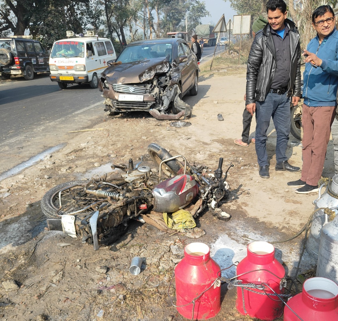 हादसे में कार सवार मोहम्मद अली और बाइक सवार ग्राम चांगीपुर निवासी निजामुद्दीन घायल हो गए। निजामुद्दीन दूध से भरी कैन लेकर जा रहे थे। टक्कर इतनी जबरदस्त थी कि दोनों वाहनों को भारी नुकसान पहुंचा।