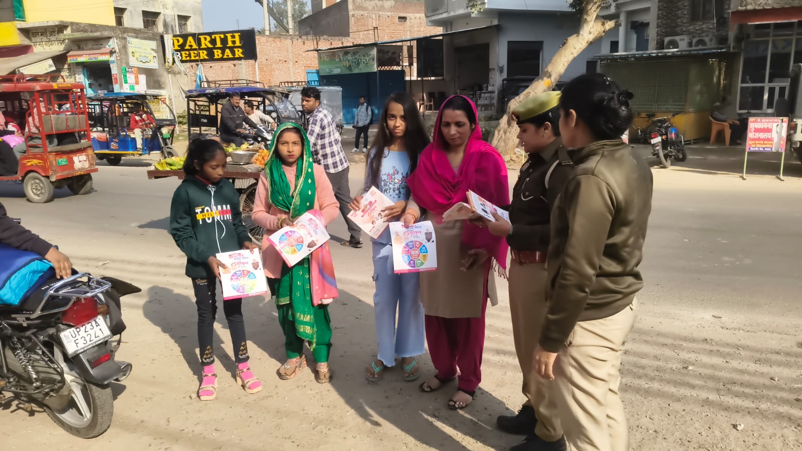 Chandpur, Bijnor : मिशन शक्ति अभियान फेज 5.0 के अंतर्गत ग्राम स्याऊ क्षेत्र, थाना चांदपुर, जनपद बिजनौर में महिला आरक्षी प्रीति तोमर और महिला आरक्षी प्रेरणा धामा द्वारा रास्ते में आने-जाने वाली महिलाओं, बालकों और बालिकाओं को जागरूक किया गया। उन्हें महिला हेल्पलाइन नंबर 181, वूमेन पावर लाइन नंबर 1090, आपातकालीन नंबर 112, स्वास्थ्य सेवा नंबर 102, एंबुलेंस नंबर 108, चाइल्ड हेल्पलाइन नंबर 1098, साइबर हेल्पलाइन नंबर 1930 और विभिन्न योजनाओं के संबंध में विस्तृत जानकारी दी गई।