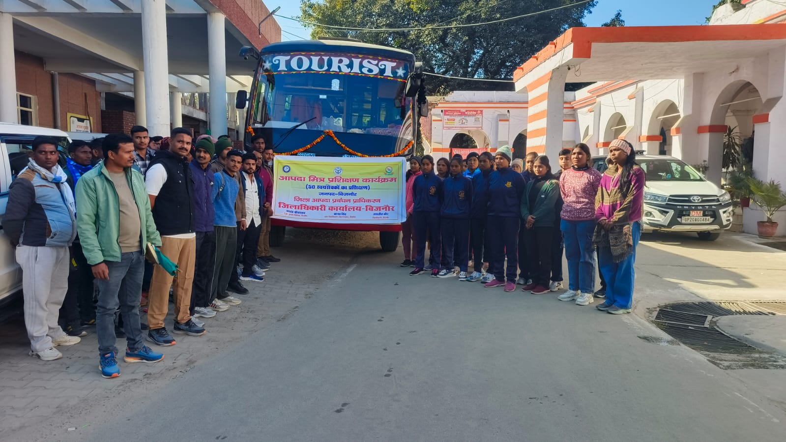 Bijnor : जिलाधिकारी जसजीत कौर द्वारा कलेक्ट्रेट परिसर से आपदा मित्र योजना के तहत प्रथम चरण में 50 स्वयंसेवकों को आपदा प्रशिक्षण के लिए हरी झंडी दिखाकर एसडीआरएफ लखनऊ के लिए रवाना किया गया।