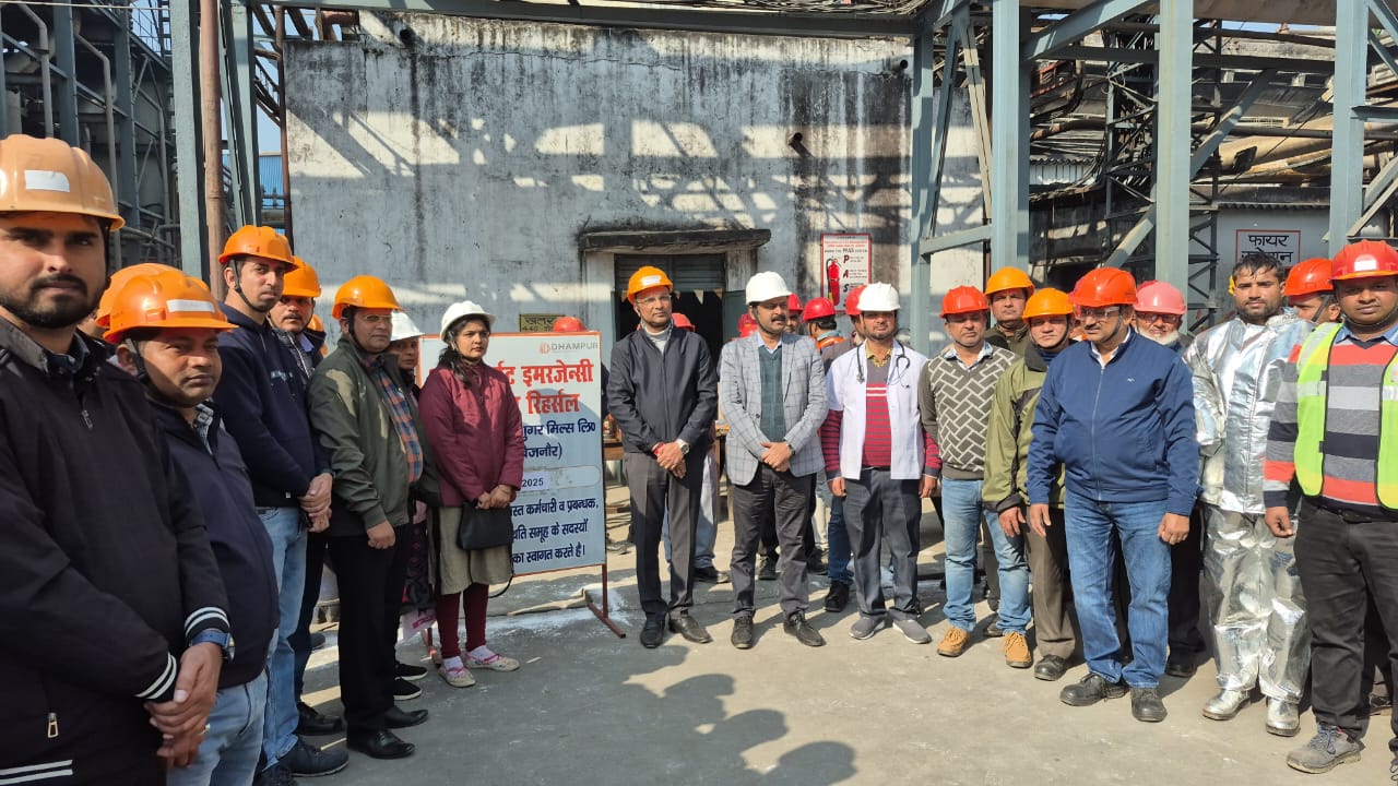 Dhampur, Bijnor : धामपुर शुगर मिल्स लिमिटेड के केमिकल यूनिट में आज ऑन साइट इमरजेंसी प्लान का रिहर्सल किया गया। धामपुर शुगर मिल की केमिकल यूनिट खतरनाक प्रकृति की श्रेणी में आती है, अतः नियमानुसार दिसंबर माह में ऑन साइट इमरजेंसी प्लान का द्वितीय रिहर्सल हर वर्ष संपन्न कराया जाता है । यह माक ड्रिल सहायक निदेशक कारखाना (उत्तर प्रदेश )श्री सुरेंद्र बहादुर सिंह के द्वारा प्रेषित पत्र के अनुपालन में किया गया ।