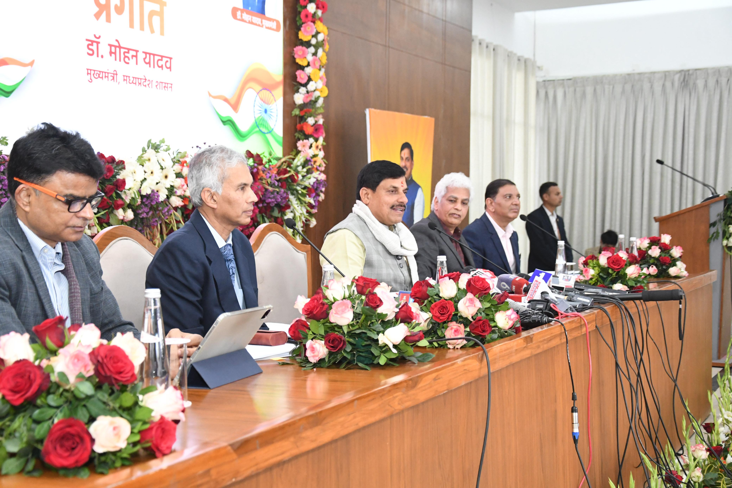 भोपाल : बुधवार को भोपाल स्थित मुख्यमंत्री निवास में प्रेस वार्ता का आयोजन किया प्रेसवार्ता को संबोधित करते हुए डॉ. मोहन यादव ने कहा कि प्रधानमंत्री नरेंद्र मोदी के सशक्त नेतृत्व और केंद्र–राज्य की डबल इंजन सरकार के प्रभावी समन्वय से देश और मध्यप्रदेश में बुनियादी ढांचा विकास को नई गति मिली है। प्रोजेक्ट मॉनीटरिंग ग्रुप (पीएमजी) और प्रोएक्टिव गवर्नेंस एंड टाइमली इंप्लीमेंटेशन (प्रगति) प्लेटफॉर्म के माध्यम से वर्षों से अटकी निवेश परियोजनाओं को पुनः सक्रिय किया गया है।