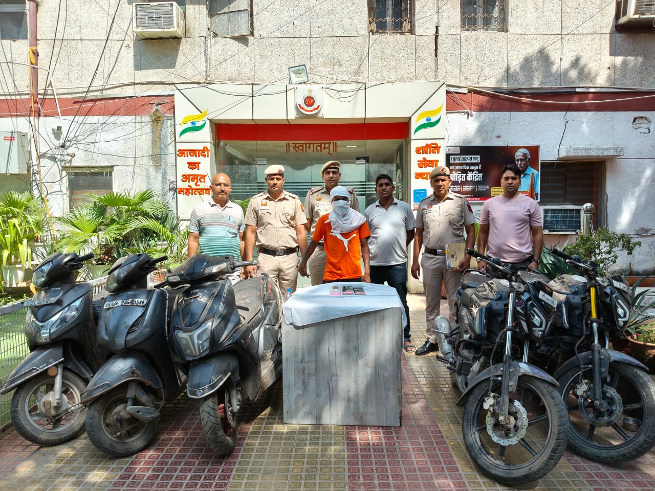 दिल्ली : पुलिस थाना राजौरी गार्डन की टीम ने एक उत्कृष्ट कार्य करते हुए आदतन अपराधी और हाल ही में तिहाड़ जेल से रिहा हुए आरोपी को गिरफ्तार किया है। टीम ने उसके कब्जे से पांच चोरी हुई दोपहिया वाहन और तीन मोबाइल फोन बरामद किए।
