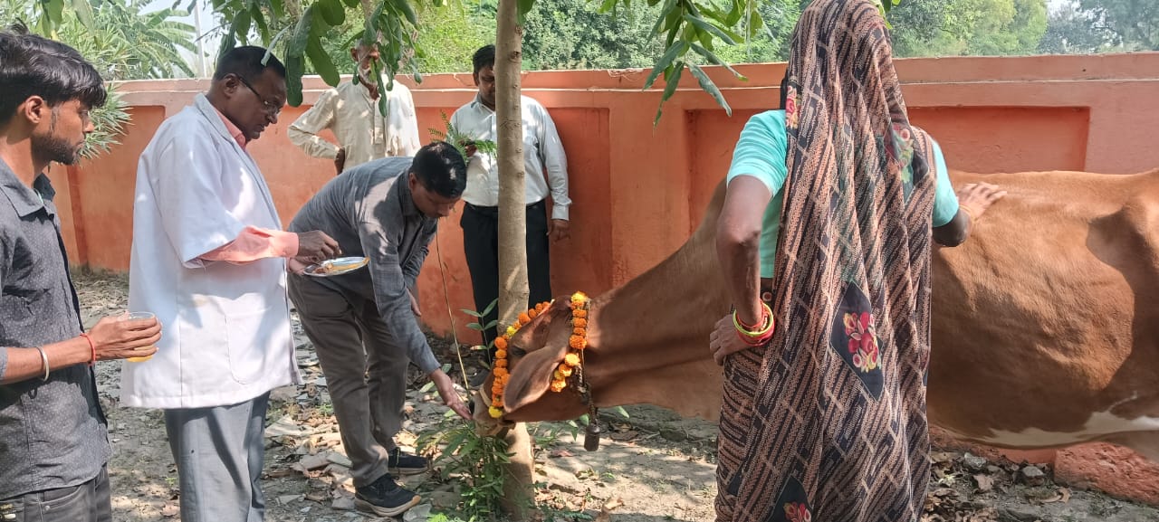 Etah : विकास खंड निधौली कलां के गांव चंद्रभानपुर में पंडित दीनदयाल उपाध्याय पशु आरोग्य शिविर का आयोजन किया गया। जिसका शुभारंभ ग्राम प्रधान एवं विशेष पशु चिकित्साधिकारी विनोद कुमार द्वारा फीता काटकर किया गया। साथ ही ग्राम प्रधान द्वारा गौ माता का पूजन कर आरती का आयोजन एवं गौमाता को गुड खिलाकर वंदना के बाद शिविर का शुभारंभ किया गया।