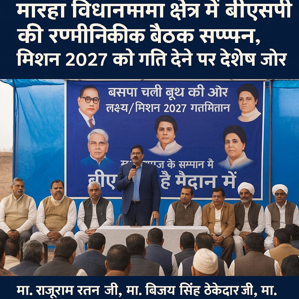 मारहरा, एटा। “बसपा चली बूथ की ओर… लक्ष्य/मिशन 2027 गतिमान” के संकल्प के साथ बहुजन समाज पार्टी द्वारा सैक्टर बढ़ोली में SIR–Special Intensive Revision (विशेष गहन पुनरीक्षण) को लेकर महत्वपूर्ण रणनीतिक बैठक सम्पन्न हुई। यह बैठक 06 दिसम्बर, बाबा साहेब डॉ. भीमराव अम्बेडकर जी के परिनिर्वाण दिवस पर नोएडा में आयोजित कार्यक्रम में अधिक से अधिक उपस्थिति सुनिश्चित करने के उद्देश्य से आयोजित की गई।