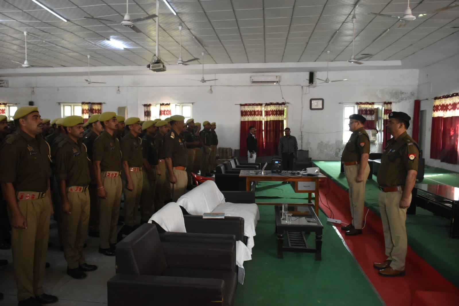 Etah : 7 नवम्बर को राष्ट्र के अग्रदूत बंकिमचंद्र चट्टोपाध्याय जी द्वारा रचित देश को एकता के सूत्र मे पिरोने वाले राष्ट्रगीत ‘वंदे मातरम्’ के 150 गौरवशाली वर्ष पूर्ण होने के उपलक्ष्य पर पुलिस लाइन में वरिष्ठ पुलिस अधीक्षक श्याम नारायण सिंह ने अपने अधीनस्थ अधिकारी/कर्मचारीगण सहित राष्ट्रीय गीत ‘वंदे मातरम्’ का सामूहिक गायन का आयोजन किया गया। प्रधानमंत्री नरेन्द्र मोदी के सम्बोधन का सजीव प्रसारण पुलिस लाइन स्थित बहुदेशीय कक्ष में देखा गया। इस अवसर पर अपर पुलिस अधीक्षक योगेन्द्र सिंह व प्रतिसार निरीक्षक प्रतिसार निरीक्षक किशनलाल गौतम सहित समस्त अधिकारी/कर्मचारी उपस्थित रहे।