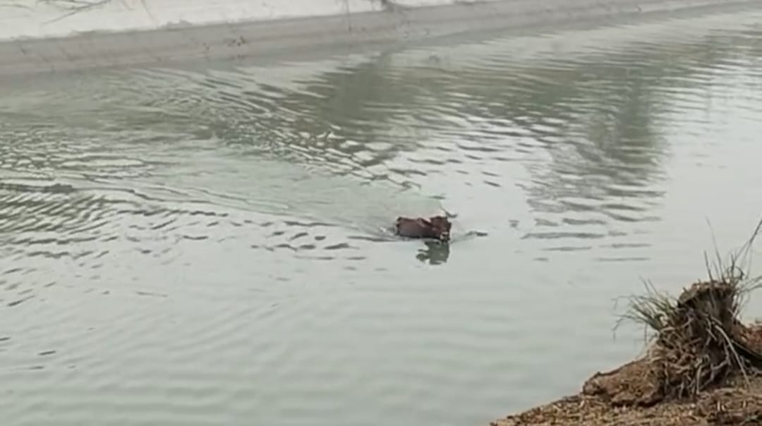 Etah : एटा के मिरहची थाना क्षेत्र के नगला गंगा राम के पास एक दर्दनाक तस्वीर सामने आई है, जहां प्यास बुझाने के लिए नहर में उतरी एक गौवंश की जान खतरे में पड़ गई। पानी पीने के बाद जब गौवंश बाहर निकलने लगी, तो पक्की और फिसलन भरी नहर की दीवारें उसके लिए जानलेवा साबित होने लगीं। नहर में फंसी गौवंश काफी देर तक बाहर निकलने के लिए संघर्ष करती रही।