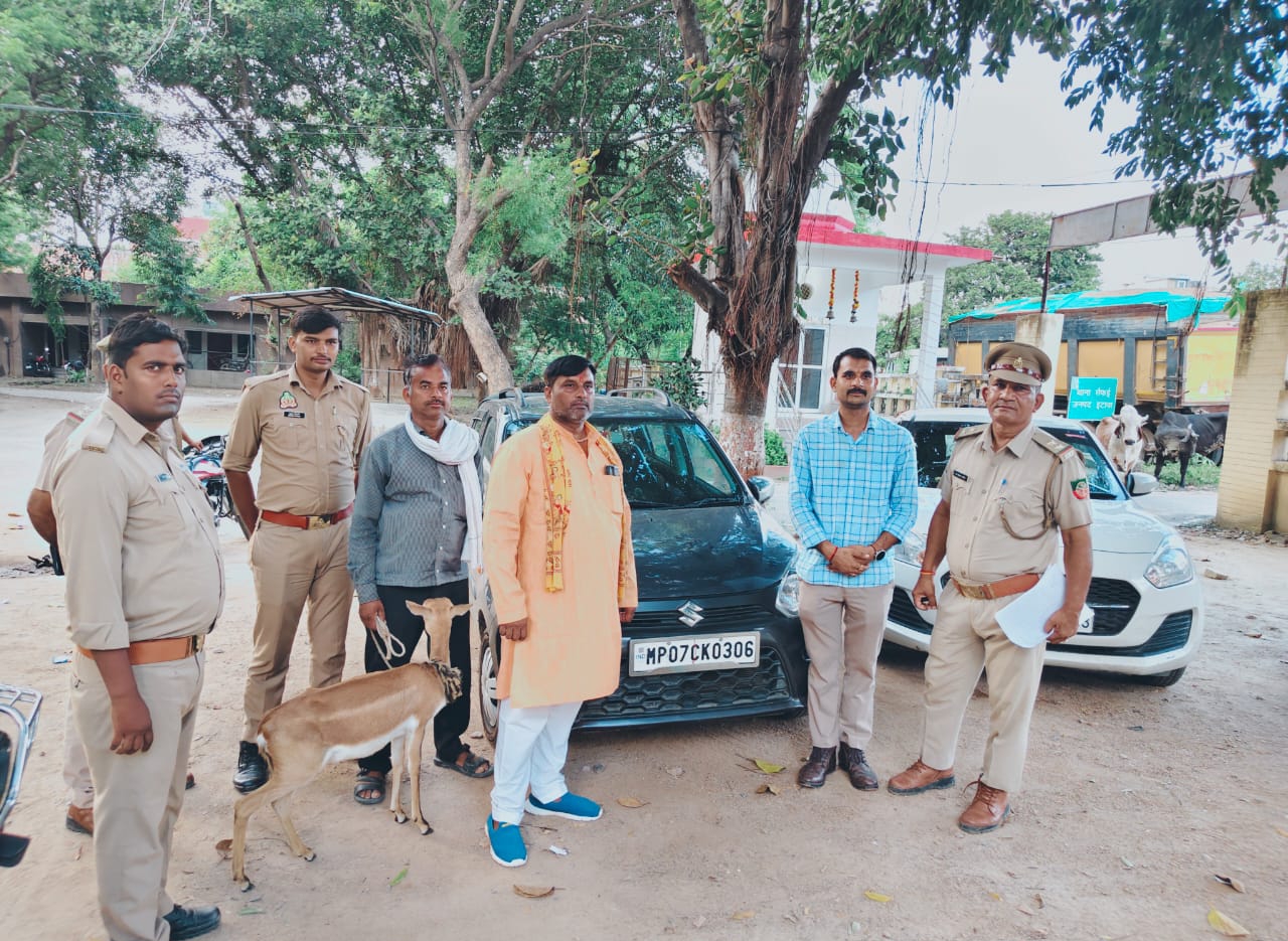 Etawah : उत्तर प्रदेश के इटावा जनपद में थाना सैफई पुलिस ने चेकिंग के दौरान एक कार में हिरण को लेकर जा रहे कथा वाचक को हिरासत में लिया गया है। पुलिस ने हिरण को वन विभाग की टीम के सुपुर्द कर मामले की जांच शुरू कर दी है।