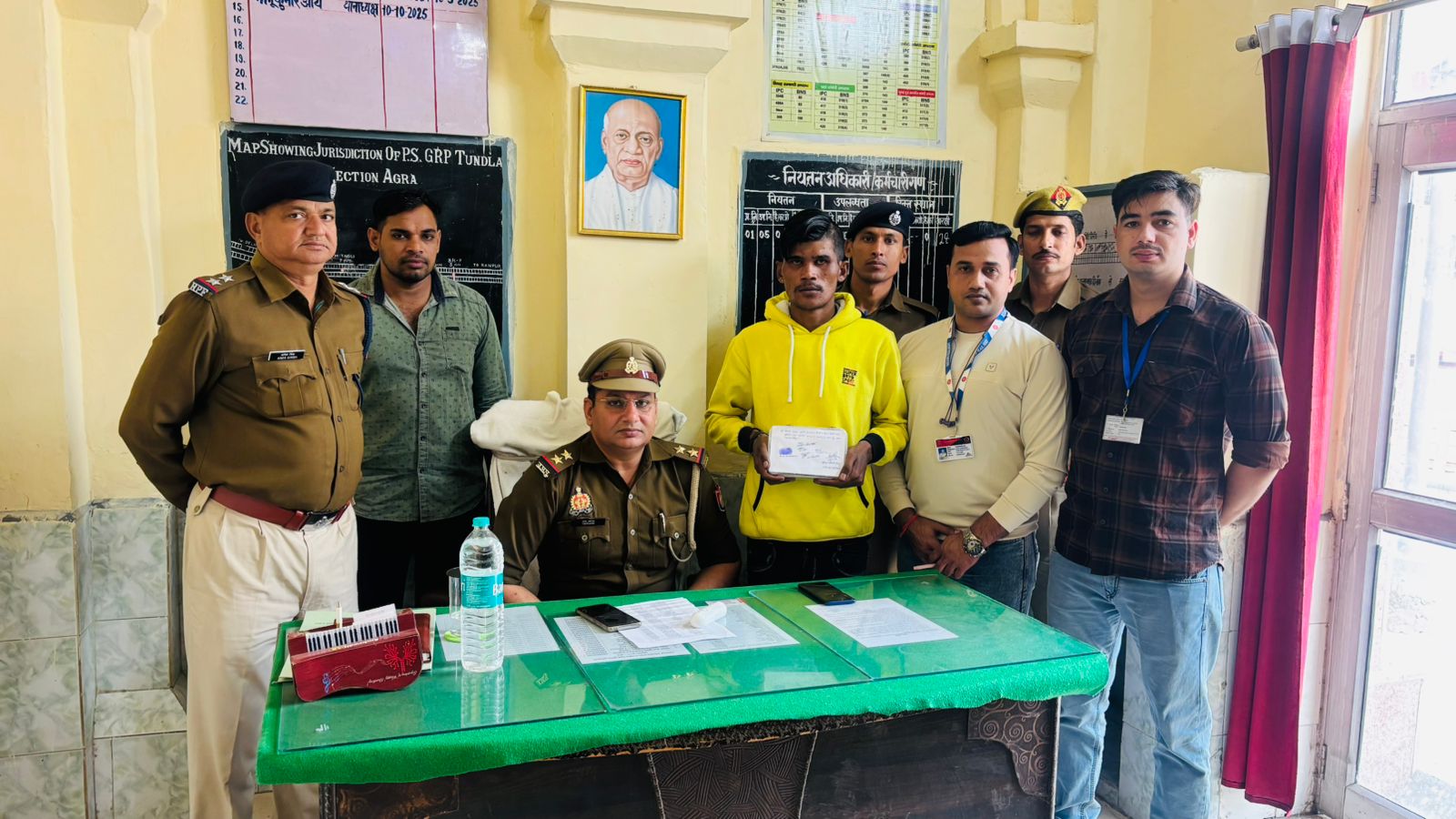 जीआरपी थाना प्रभारी मोनू आर्य के नेतृत्व में चेकिंग अभियान पुलिस टीम द्वारा रेलवे स्टेशन टूंडला पर चेकिंग अभियान चलाया जा रहा था। उसी दौरान प्लेटफार्म तीन पर एक युवक संदिग्ध खड़ा हुआ दिखाई दिया। पुलिस ने जब उससे पूछताछ की तो घबरा कर भागने लगा। तभी पुलिस गिरफ्तार कर थाने लाई। जहां उसकी तलाशी लेने पर एक चोरी का मोबाइल बरामद हुआ है।