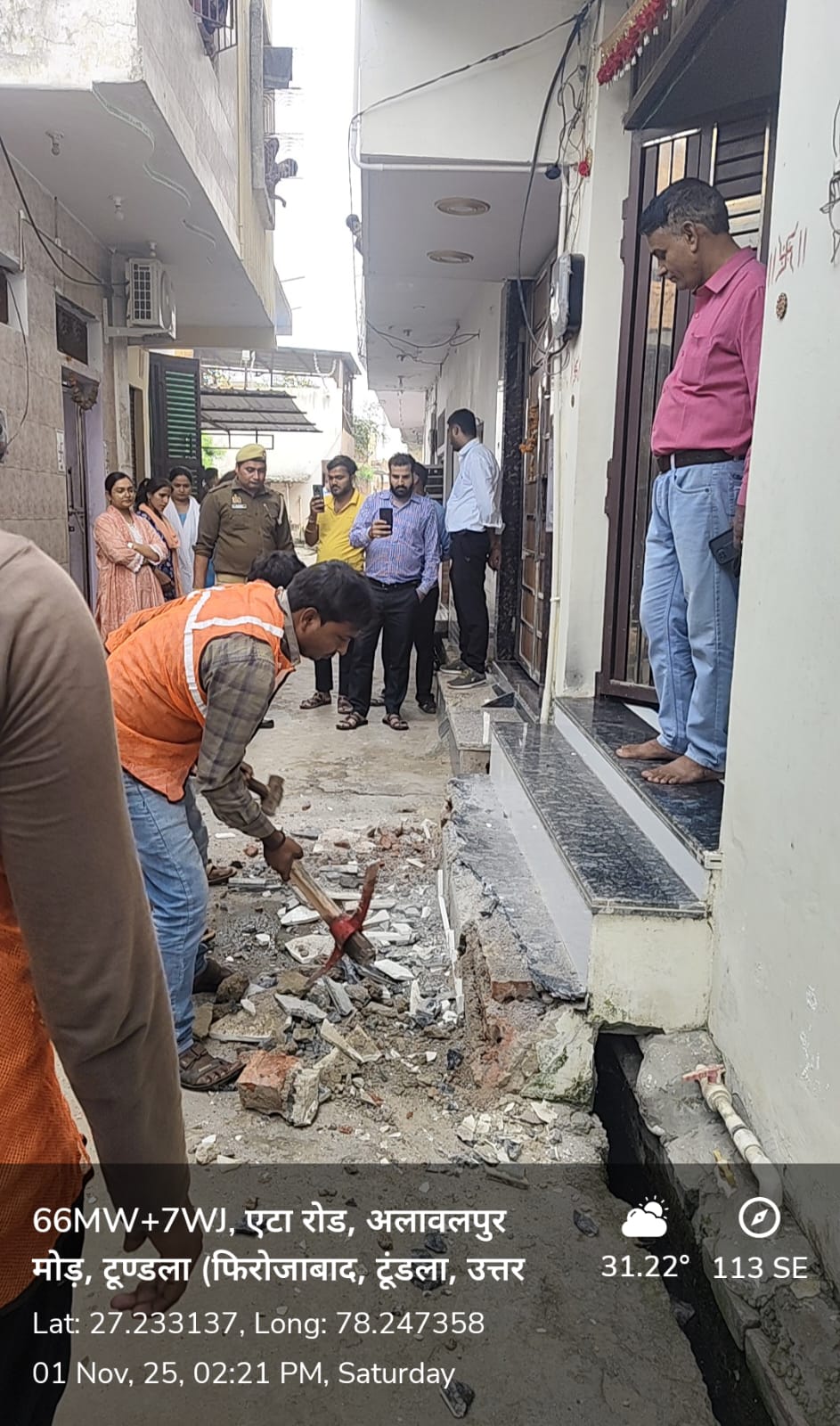 Tundla, Firozabad : मुख्यमंत्री आईजीआरएस पर टूंडला प्रशासन की मिलीभगत से गली में बनी अवैध सीढ़ियों को न तोड़े जाने की शिकायत मोहल्ले के निवासी धर्मेंद्र कुमार रावत पुत्र हरिशरण शर्मा निवासी एटा रोड, टूंडला, फिरोजाबाद ने की थी। शिकायत में उन्होंने जितेंद्र शर्मा की गली में बनी अवैध सीढ़ियों को हटवाने की मांग की थी।