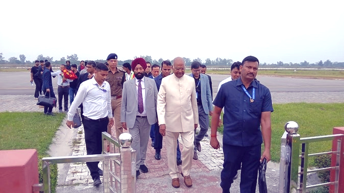 ऊधम सिंह नगर : पूर्व राष्ट्रपति रामनाथ कोविंद नैनीताल दौरे पर आज दोपहर 1:40 बजे पंतनगर एयरपोर्ट पहुंचे। इस दौरान पुलिस और प्रशासन के वरिष्ठ अधिकारी उनकी अगवानी के लिए मौजूद रहे। एयरपोर्ट से निकलने के बाद वे पंतनगर विश्वविद्यालय के तराई भवन (कुलपति आवास) पहुंचे, जहां उन्होंने लंच किया। इसके बाद पूर्व राष्ट्रपति सड़क मार्ग से नैनीताल के लिए रवाना हो गए।