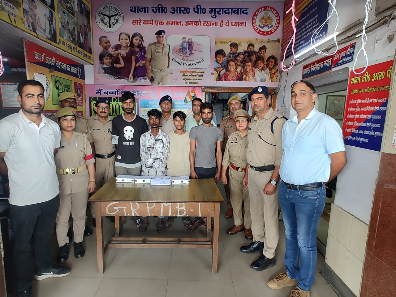 जीआरपी के प्रभारी ने बताया कि पुलिस टीम की पूछताछ में पता चला है कि चारो अभियुक्त शातिर किस्म के अभ्यस्त अपराधी है। अभियुक्त नशे के आदि है। अपने नशे का शोक पूरा करने के लिए ट्रेनों से मोबाइल व बैग चुराकर सस्ते दामो में बेचकर अपने नशे का शौक पूरा करते है। आरोपियों ने पुलिस को बताया कि जो मोबाइल उनके पास से मिले हैं, ये सभी पिछले कई महीनो में अलग-अलग ट्रेनों से चुराए गए थे। चारो अभियुक्त रेलवे स्टेशन क्षेत्र के आस-पास व प्लेटफार्म एव ट्रेनों में चढ़कर मौके पर यात्रियों को टारगेट कर मोबाइल फोन, पर्स ,नगदी व अन्य कीमती सामानों को चोरी कर लेते थे, जिसके बाद आरोपी चोरी के मोबाइल को बेचकर नशे का शौक पूरा करते हैं। इस मामले में थाना जीआरपी मुरादाबाद पुलिस ने आरोपियों के खिलाफ कार्रवाई करते हुए मुकदमा दर्ज कर लिया गया है।