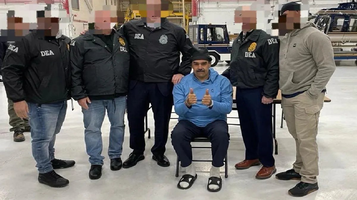 - हथकड़ी में मादुरो, थम्स-अप वाली तस्वीर वायरल: ट्रंप ने खुद मादुरो की तस्वीर शेयर की, जिसमें वे हथकड़ी और आंखों पर पट्टी के साथ अमेरिकी युद्धपोत पर नजर आ रहे हैं. तस्वीर को शक्ति प्रदर्शन के तौर पर देखा जा रहा है.