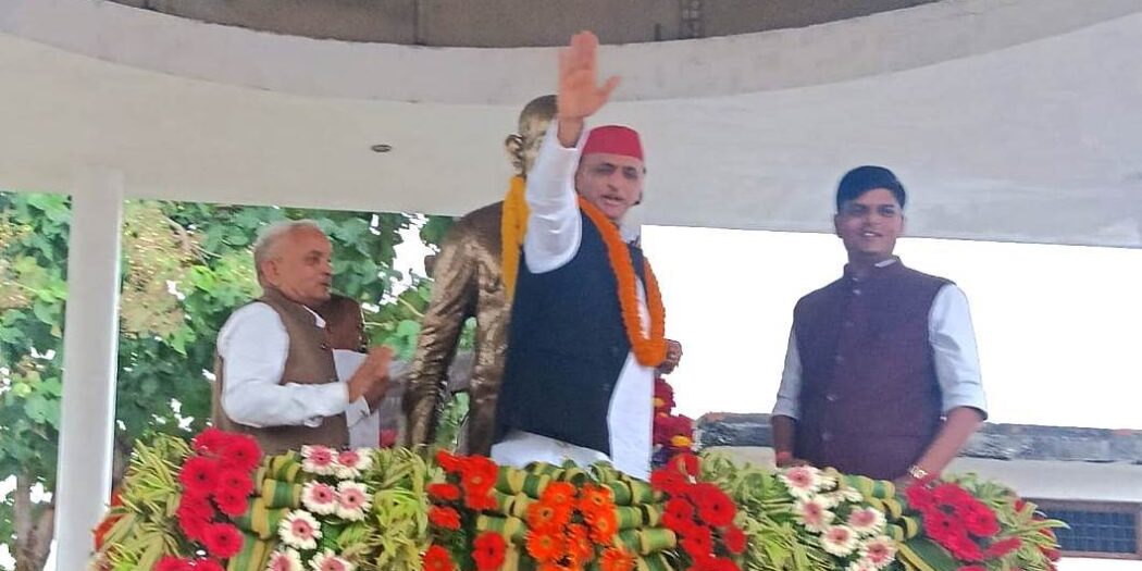 सपा मुखिया ने ईशोपुर के स्व.रामकरन दादा की प्रतिमा पर किया माल्यार्पण