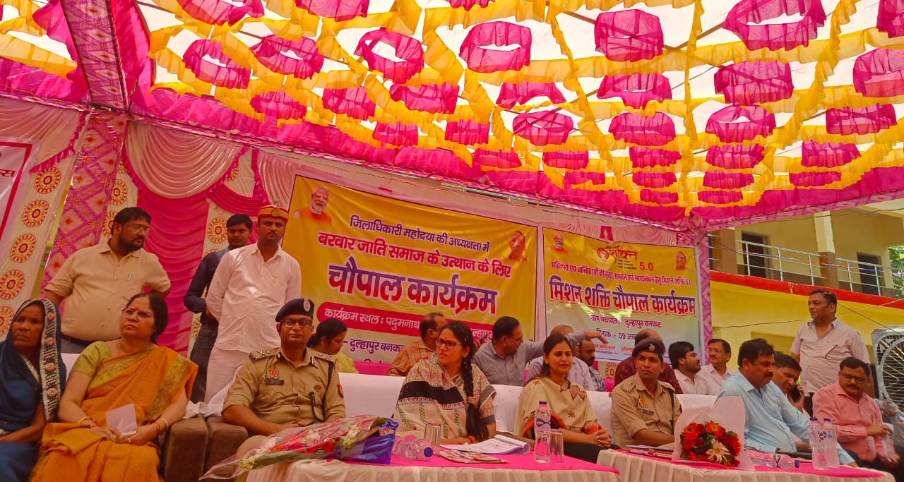 समाज में बरवार जाति से गगा बरवार विधायक हुए तो समाज के लोग जागरूक हुए इसके बाद से बरवार समाज के बच्चा ने पढ़ाई शुरू की। गुरुवार को दुल्हापुर बनकट में अधिकारियों की चौपाल लगी तो डीएम प्रियका निरजन व सीडीओ अंकिता जैन ने बेटियों के शिक्षा, स्वास्थ्य, स्वालबन, सुरक्षा को लेकर टिप्स दिये। आइजी अमित पाठक ने आर्थिक स्वावलंबन पर जोर दिया, उन्होंने कहा कि आर्थिक क्षेत्र में बेटिया आगे आयेगी तभी मिशन शक्ति अभियान की सफलता मानी जाएगी। इस मौके पर डीएम सीडीओ आइजी ने बालिकाओं को सम्मानित किया किसानों को बीज के मिनी किट प्रदान किये गये।