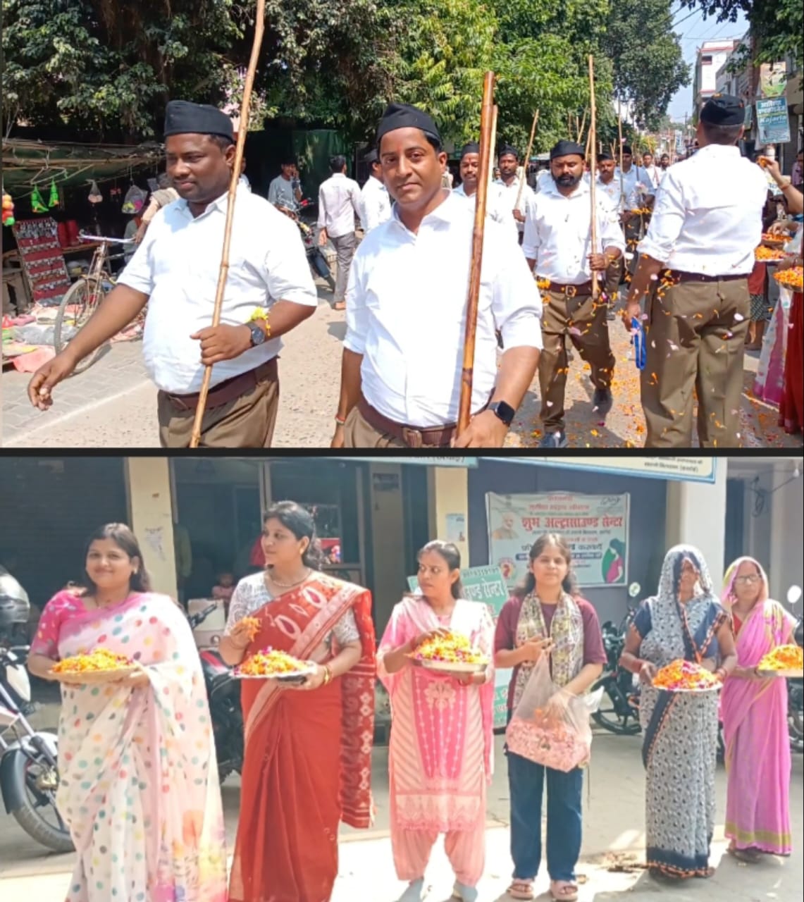 पथ संचलन के दौरान स्वयंसेवक गीत गाते, झंडा लिए आगे बढ़ते रहे। उनके अनुशासन और ऊर्जा को देखकर नगरवासी अभिभूत हो उठे। कई जगह लोग अपने घरों की छतों से पुष्पवर्षा कर रहे थे। संघ की इस यात्रा ने नगर में देशभक्ति और एकता का माहौल बना दिया।कार्यक्रम की सुरक्षा व्यवस्था के लिए प्रभारी निरीक्षक अरविंद राय अपने पूरे दलबल के साथ मार्ग के आगे से पीछे तक सक्रिय रूप से मौजूद रहे। पुलिस ने चप्पे-चप्पे पर तैनाती कर सुरक्षा को पुख्ता बनाए रखा। कोतवाली प्रभारी स्वयं संचलन के साथ चलते हुए व्यवस्था संभालते रहे ताकि आयोजन शांति और सौहार्द के साथ संपन्न हो।जानकारी के अनुसार, राष्ट्रीय स्वयंसेवक संघ 1925 में डॉ. हेडगेवार जी द्वारा स्थापित किया गया था और अब अपने 100 वर्ष पूर्ण होने के उपलक्ष्य में देशभर में शताब्दी वर्ष मना रहा है।