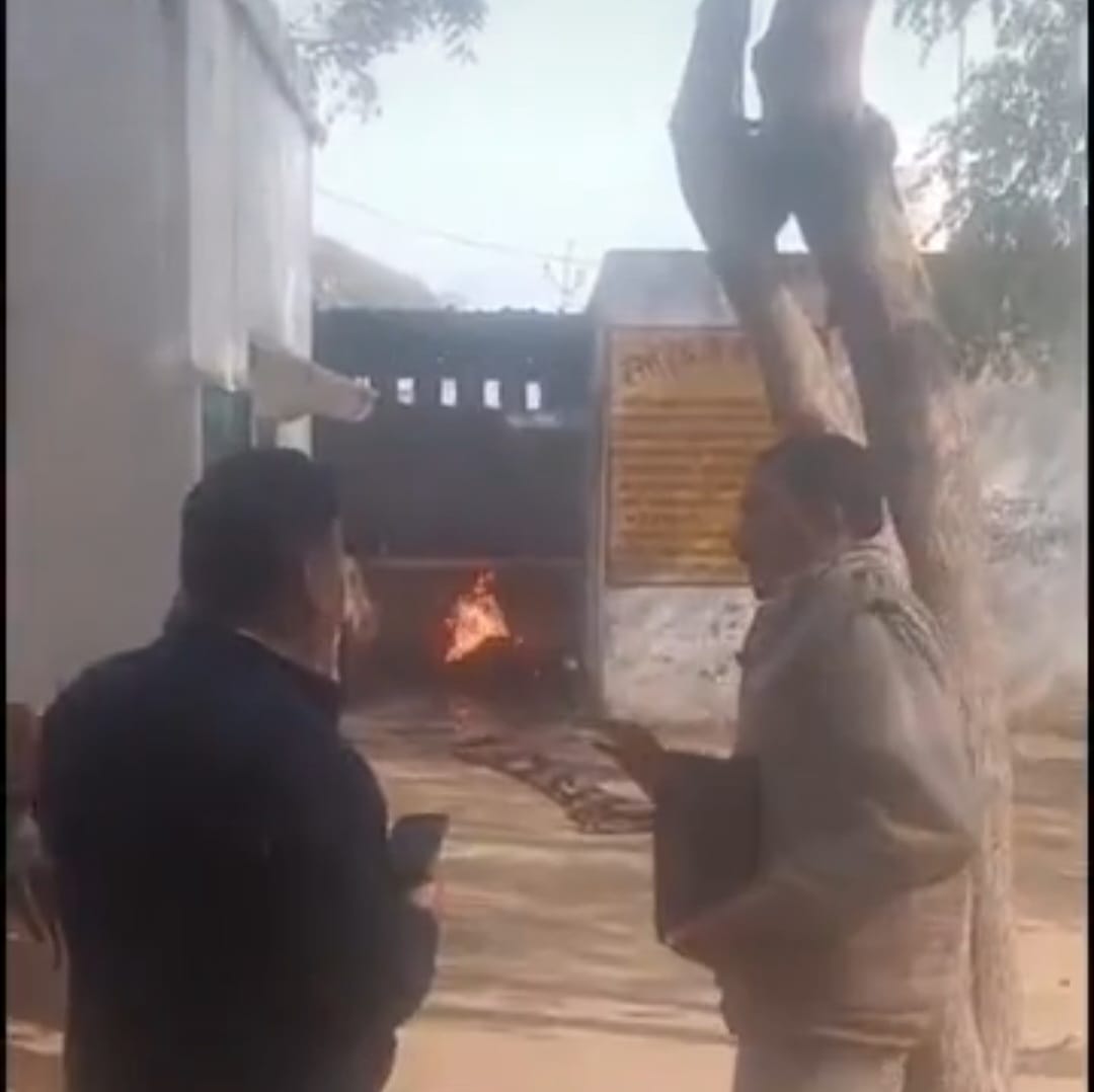 Hathras : सासनी क्षेत्र अंतर्गत गांव मोहिरिया स्थित एक कंपोजिट विद्यालय में उस समय अफरा-तफरी मच गई, जब मिड-डे मील की रसोई में खाना बनाते समय गैस सिलेंडर में अचानक आग लग गई। रसोई से धुआं और लपटें उठती देख विद्यालय परिसर में मौजूद शिक्षक और कर्मचारी घबरा गए। घटना की जानकारी मिलते ही तुरंत स्थानीय पुलिस और दमकल विभाग को सूचित किया गया।