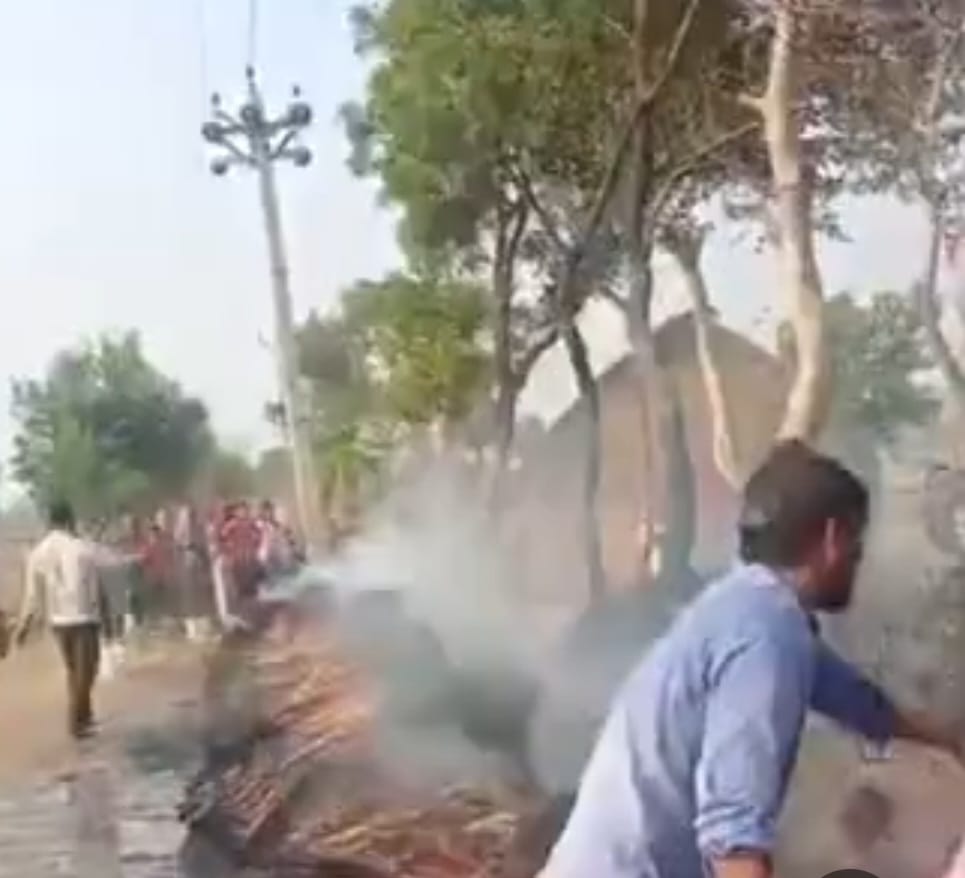 Hathras : सादाबाद क्षेत्र के नंगला कला नौगांव में शुक्रवार दोपहर अचानक आग लगने से किसानों के बुर्जी और बिटोरे (पशुओं के चारे व उपले/कंडे) जलकर राख हो गए। इस आगजनी से किसानों को आर्थिक नुकसान हुआ और पशुओं के लिए चारे की कमी का संकट खड़ा हो गया।