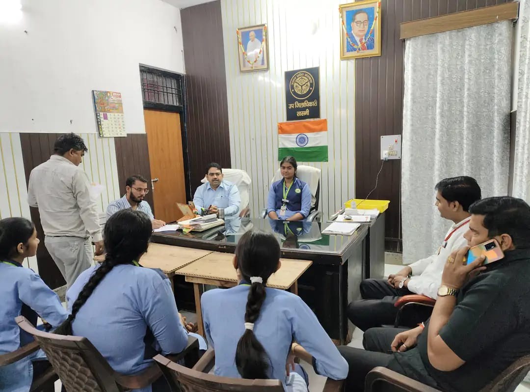 Sasani, Hathras : छात्राओं को प्रशासनिक प्रक्रिया से परिचित कराना था । छात्राओं ने महिलाओं को आश्वासन दिया कि उन पर हो रहे अत्याचारों को अब बर्दाश्त नहीं किया जाएगा। सोमवार को यह विचार एसडीएम नीरज शर्मा ने उस वक्त व्यक्त किए जब मिशन शक्ति अभियान के तहत सीमैक्स इंटरनेशनल की छात्रा आराध्या शर्मा और भूमि सिंह को एक दिन के लिए एसडीएम बनाया गया। दोनों छात्राओं ने एसडीएम के तौर पर लोगों की समस्याएं सुनीं और मौके पर चार शिकायतों का निस्तारण किया। दोनों छात्राओं के तहसील पहुंचने पर एसडीएम नीरज शर्मा और तहसीलदार रजत कुमार ने बुके और उपहार भेंटकर उनका सम्मान किया।