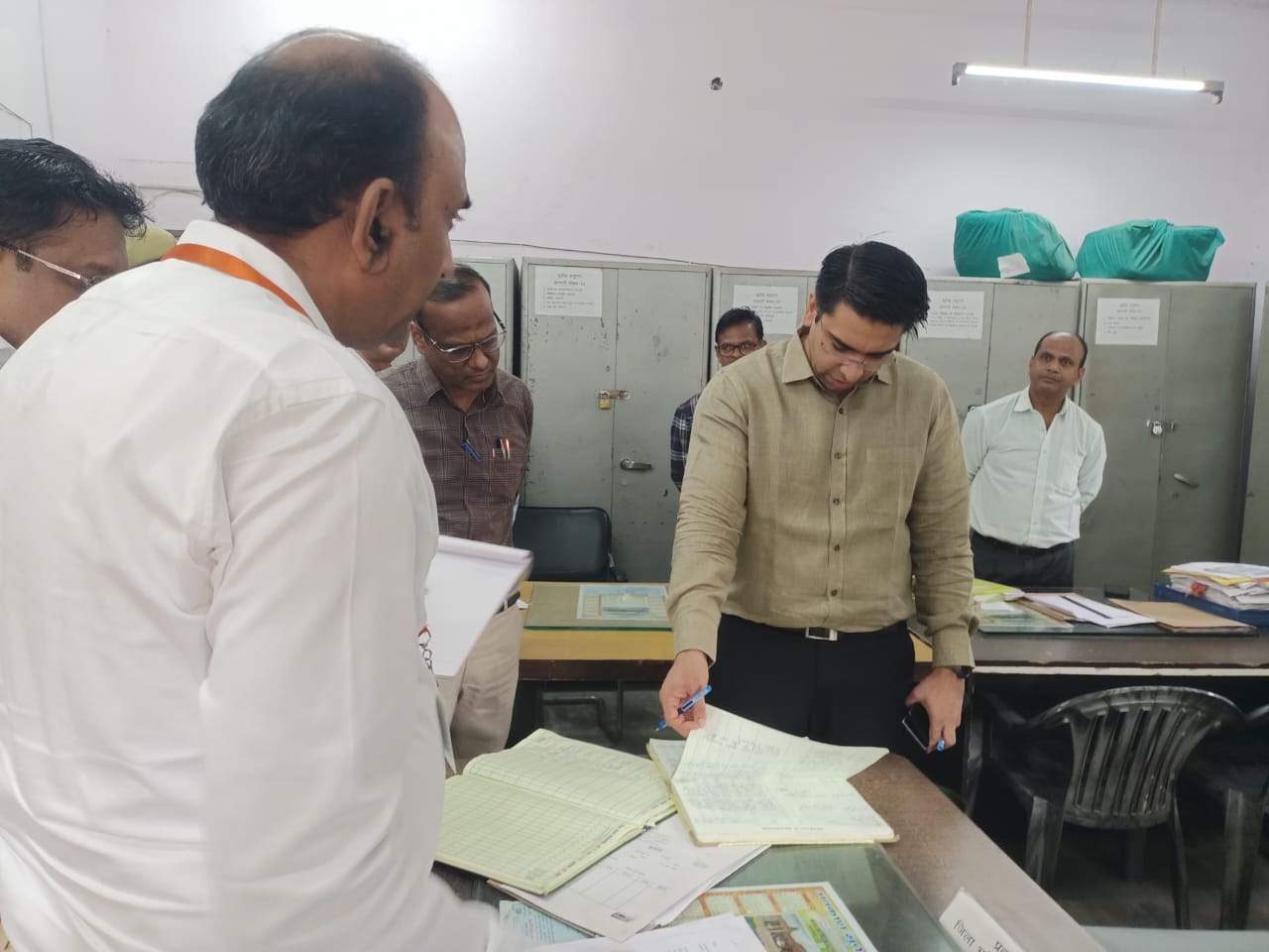 Hathras : जिलाधिकारी अतुल वत्स ने आज कलेक्ट्रेट स्थित डीएलआरसी पटल का निरीक्षण किया। उन्होंने अधिकारियों व कर्मचारियों को समय से कार्यालय में उपस्थित रहकर कार्यों का निष्ठा से निर्वहन करने के निर्देश दिए। उन्होंने कहा कि प्राप्त शिकायतों का समयबद्ध एवं गुणवत्तापूर्ण निस्तारण किया जाए और अभिलेख सुव्यवस्थित व अद्यतन रहें। कार्यालयों में साफ-सफाई, नेमप्लेट व आईडी कार्ड अनिवार्य रूप से सुनिश्चित किए जाएं।
