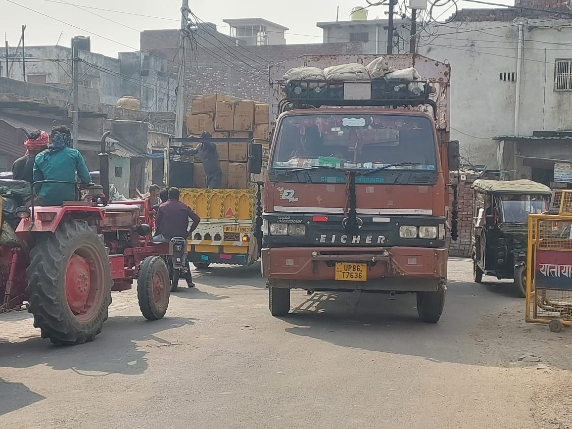 Hathras : शहर के व्यस्त चौराहा बागमूला, गौशाला रोड पर नो एंट्री व्यवस्था पूरी तरह कागज़ी साबित हो रही है। प्रतिदिन भारी वाहन इस मार्ग से बेरोकटोक गुजरते हैं, जिसके कारण क्षेत्र में लंबा जाम लग जाता है। स्थानीय लोगों का आरोप है कि ट्रैफिक पुलिस इंचार्ज की शिथिलता और मेहरबानी के कारण बड़े ट्रक और लदे वाहन नो एंट्री समय में भी आसानी से प्रवेश कर जाते हैं। फोटो में दिख रही स्थिति भी शनिवार की है, जब भारी वाहनों की वजह से चौराहे पर अफरातफरी मच गई। ट्रक, ट्रैक्टर और छोटे वाहन एक-दूसरे में फंस गए और राहगीरों को बड़ी मशक्कत के बाद निकलना पड़ा।