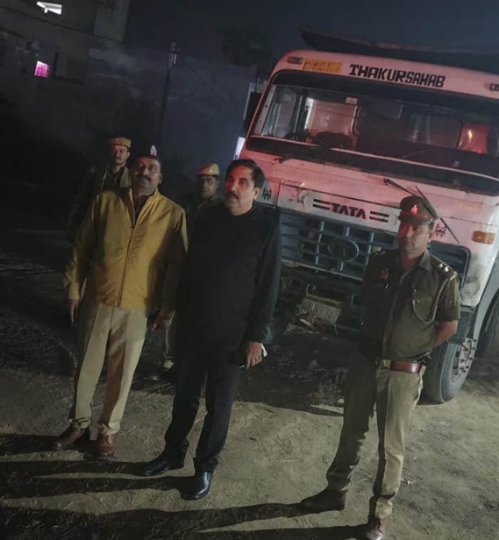 Hathras : बिना नंबर प्लेट वाले डंपर-ट्रक पुलिस ने किये जब्त