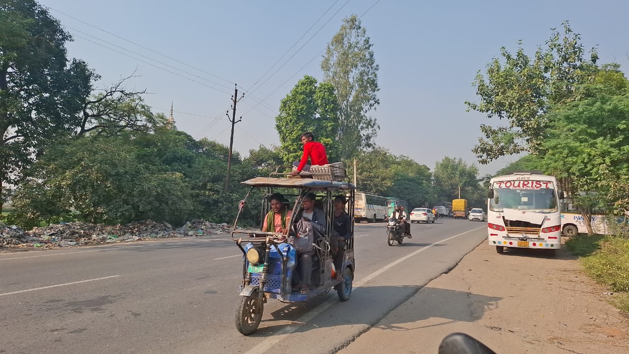 यह दृश्य न केवल मोटर वाहन अधिनियम का उल्लंघन है, बल्कि यात्रियों की जान के साथ खिलवाड़ भी है। नियमों के अनुसार, ई-रिक्शा में अधिकतम चार सवारियाँ ही बैठ सकती हैं और किसी भी यात्री को वाहन की छत या बाहर लटकाकर ले जाना सख्त वर्जित है।