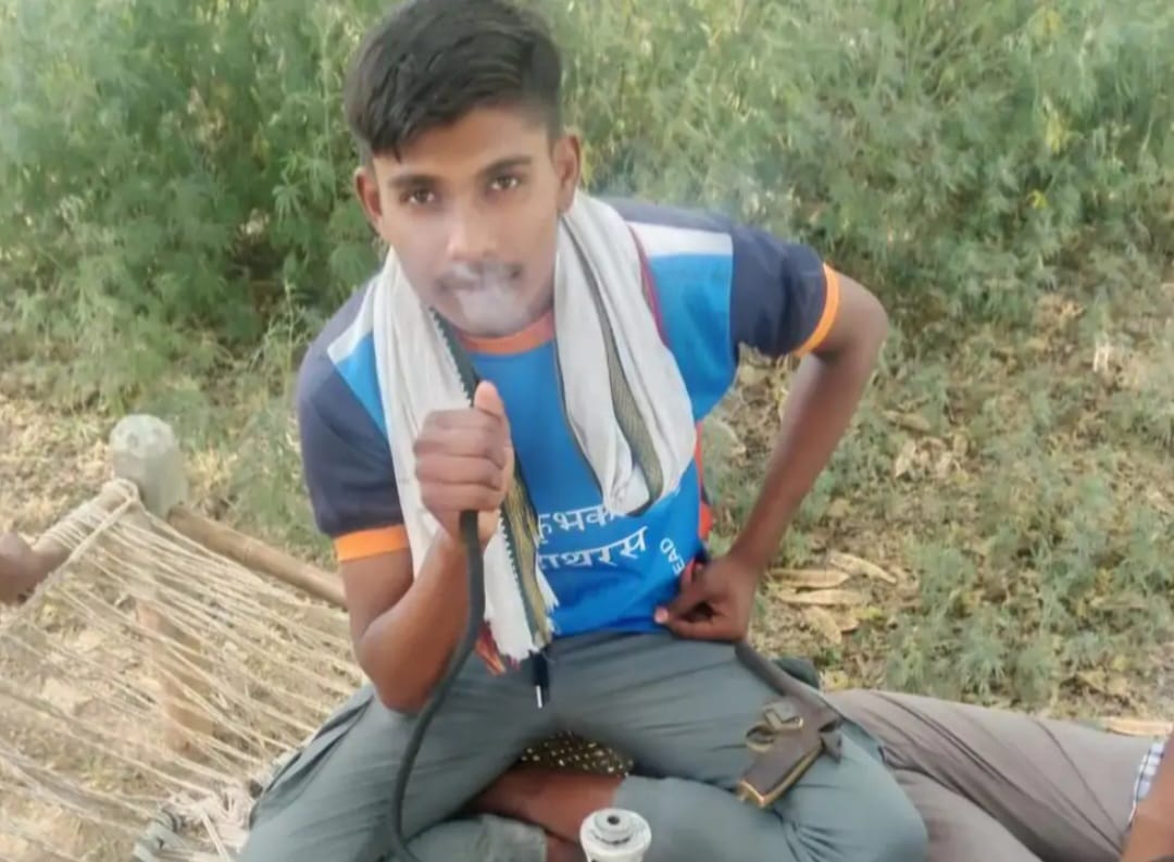 हाथरस। सासनी क्षेत्र में एक युवक का फोटो, तमंचे के साथ हुक्का पीते हुए वायरल हो रहा है। इस फोटो में साफ़ दिख रहा है कि युवक के पास तमंचा रखा है और वह शानदार तरीके से हुक्का पीते हुए नजर आ रहा है।