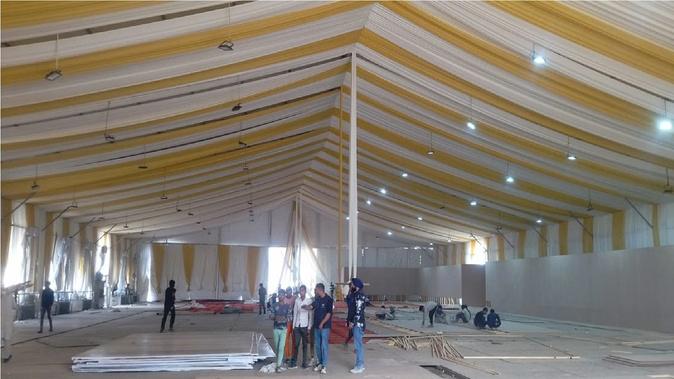 कार्यक्रम परिसर में सुरक्षा कर्मियों और अन्य कर्मचारियों के लिए 100 से ज्यादा हट बनाए गए हैं। साथ ही सीसीटीवी कंट्रोल रूम और बिजली सप्लाई यूनिट भी तेजी से विकसित किए जा रहे हैं।