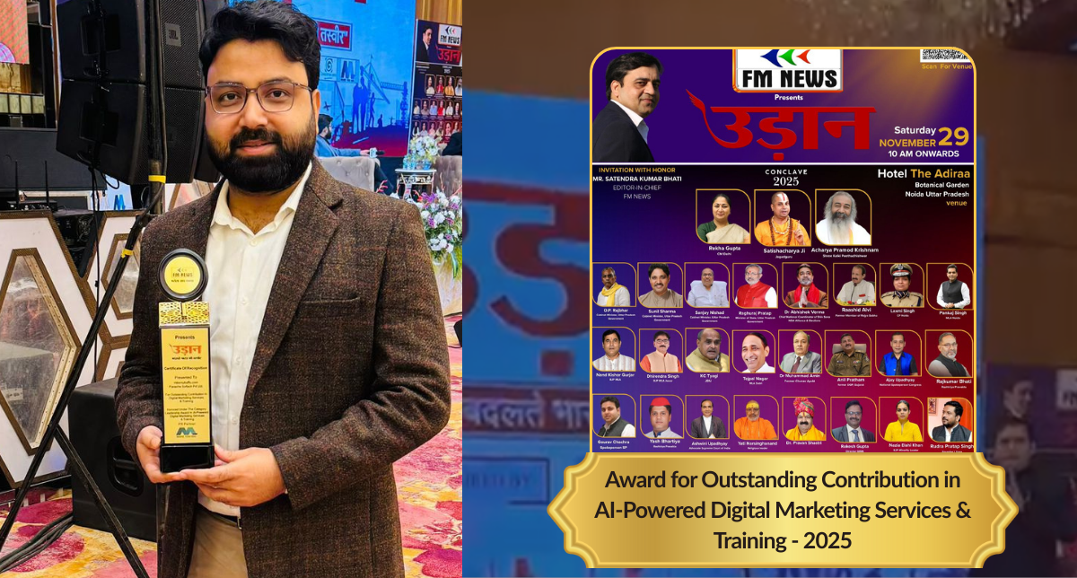 यह अवॉर्ड राज्यसभा के पूर्व सदस्य श्री राशिद अलवी द्वारा राष्ट्रीय कार्यक्रम “उड़यान – बदलते भारत की तस्वीर” में दिया गया। यह कार्यक्रम भारत में तेजी से हो रहे डिजिटल विकास, नवाचार और AI अपनाने को पहचान देने के लिए आयोजित किया गया था।